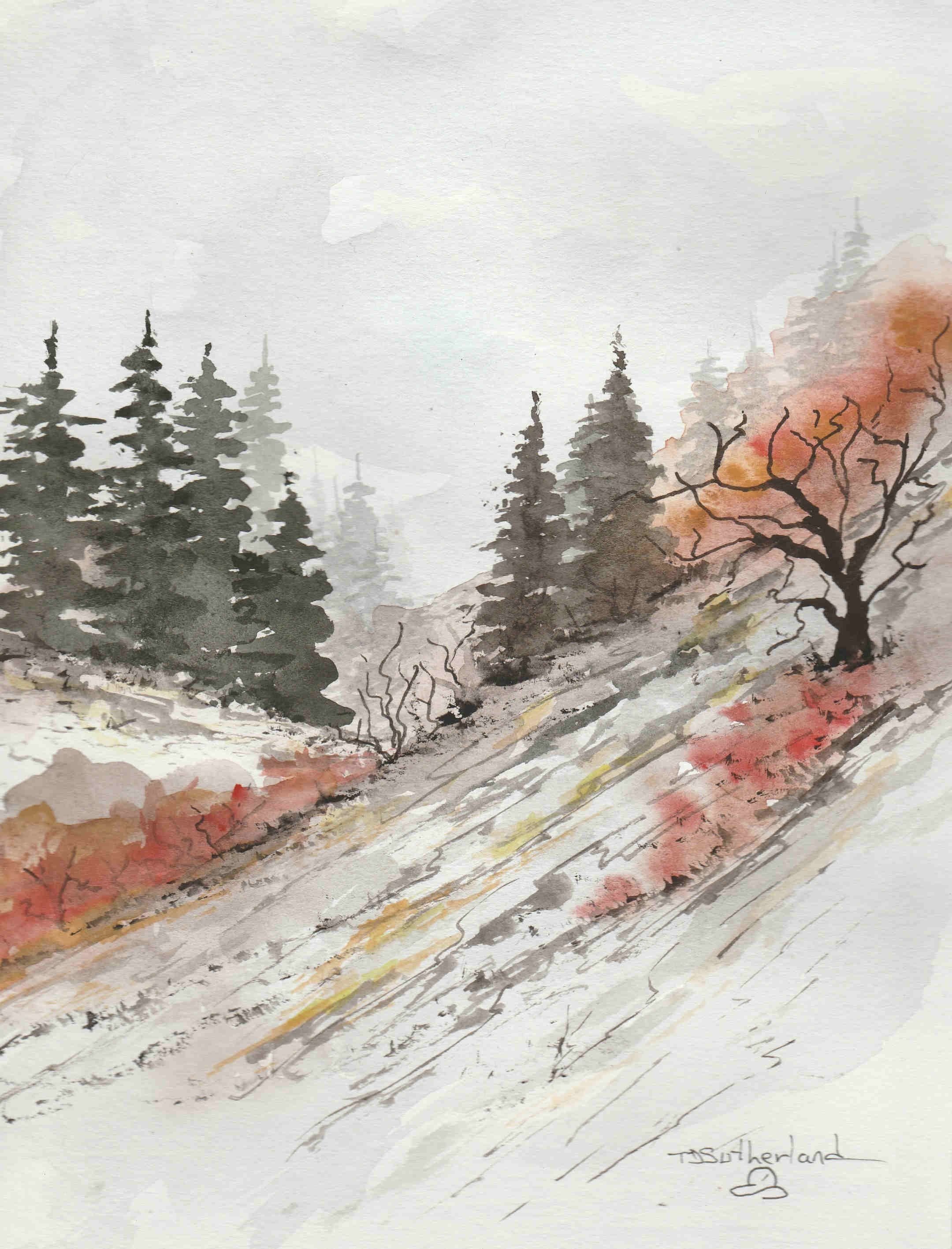 Рисование горного пейзажа