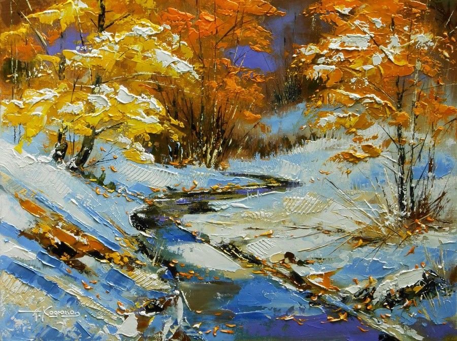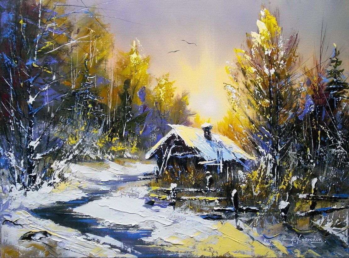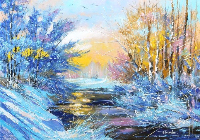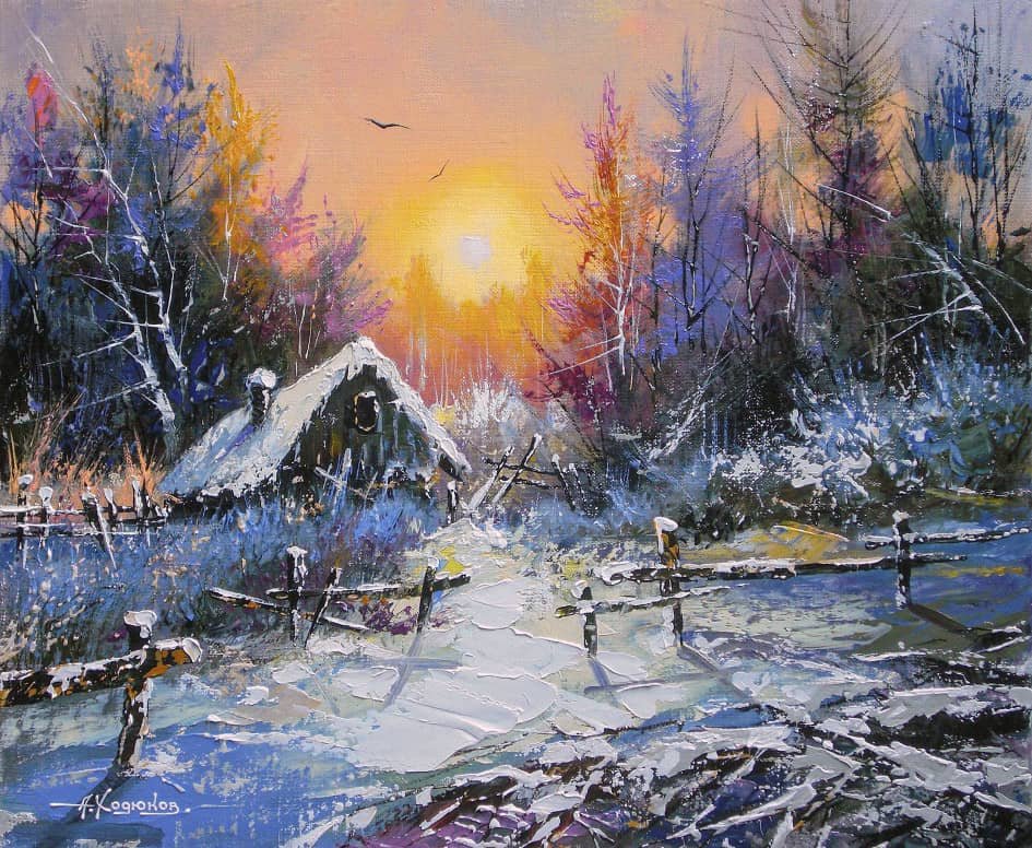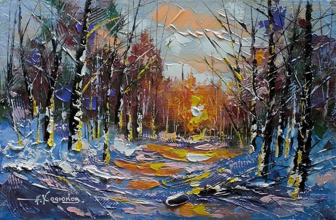 Зимний пейзаж, запечатленный маслом мастихином, привносит в себя неповторимую атмосферу холода и чистоты. Кисть художника легко скользит по холсту, создавая живописные сцены заснеженных лесов, замерзших озер и уютных деревень, окутанных белым покрывалом. Мастера масляной живописи смогли передать магию зимы, отражая игру света на снежных вершинах и создавая эффект трещин на ледяных поверхностях. Приятная текстура масла мастихином добавляет особый шарм этим работам, делая их живыми и выразительными. Зимний пейзаж маслом мастихином – это способ увидеть и почувствовать красоту зимы, насладиться ее тишиной и хрупкостью через произведения искусства.