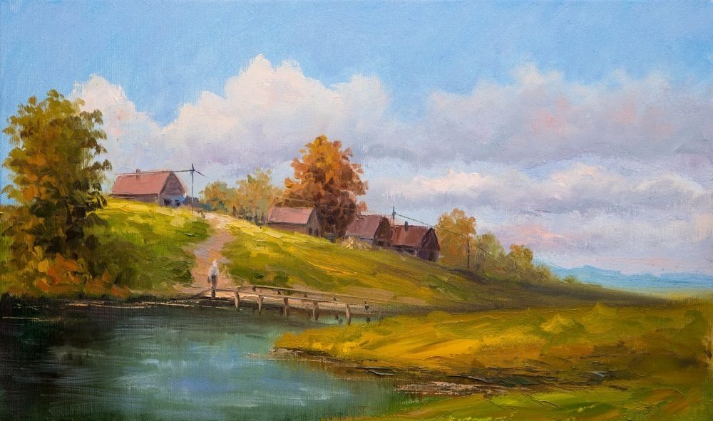 Пейзаж деревенский, запечатлённый на холсте масляными красками, является настоящим произведением искусства. Это картина, которая передаёт неповторимую атмосферу загородной местности с её прекрасными природными ландшафтами. Каждый штрих кисти отражает красоту зелёных полей, живописные холмы и густые леса. Вид изображения создаёт ощущение уединения и покоя, приглашая зрителя окунуться в этот мир спокойствия и гармонии. Пейзаж деревенский маслом на холсте - это не только украшение интерьера, но и возможность прочувствовать красоту окружающего мира прямо в своём доме.