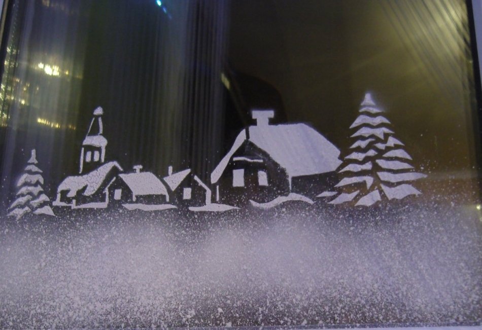 Украшение окон искусственным снегом