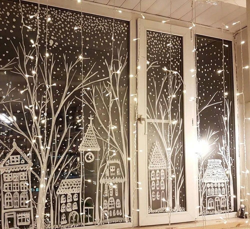Разрисованные окна на новый год