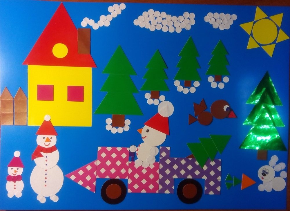Аппликация из геометрических фигур зима