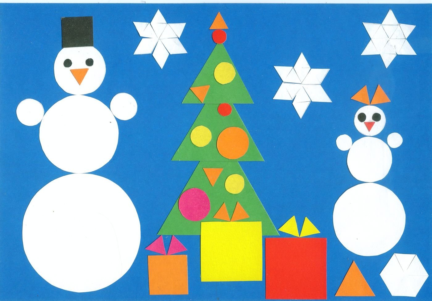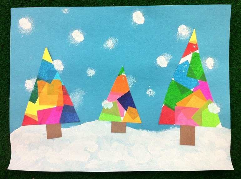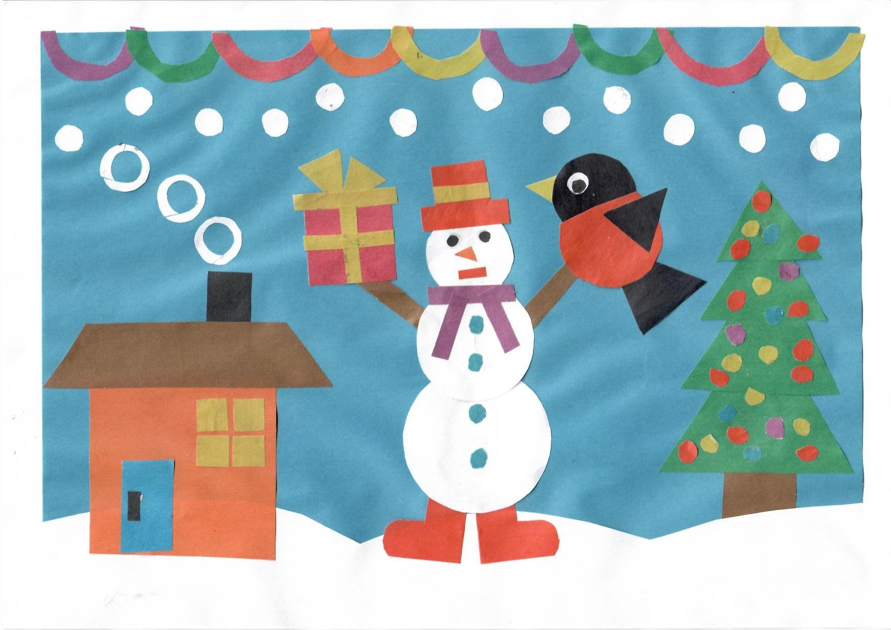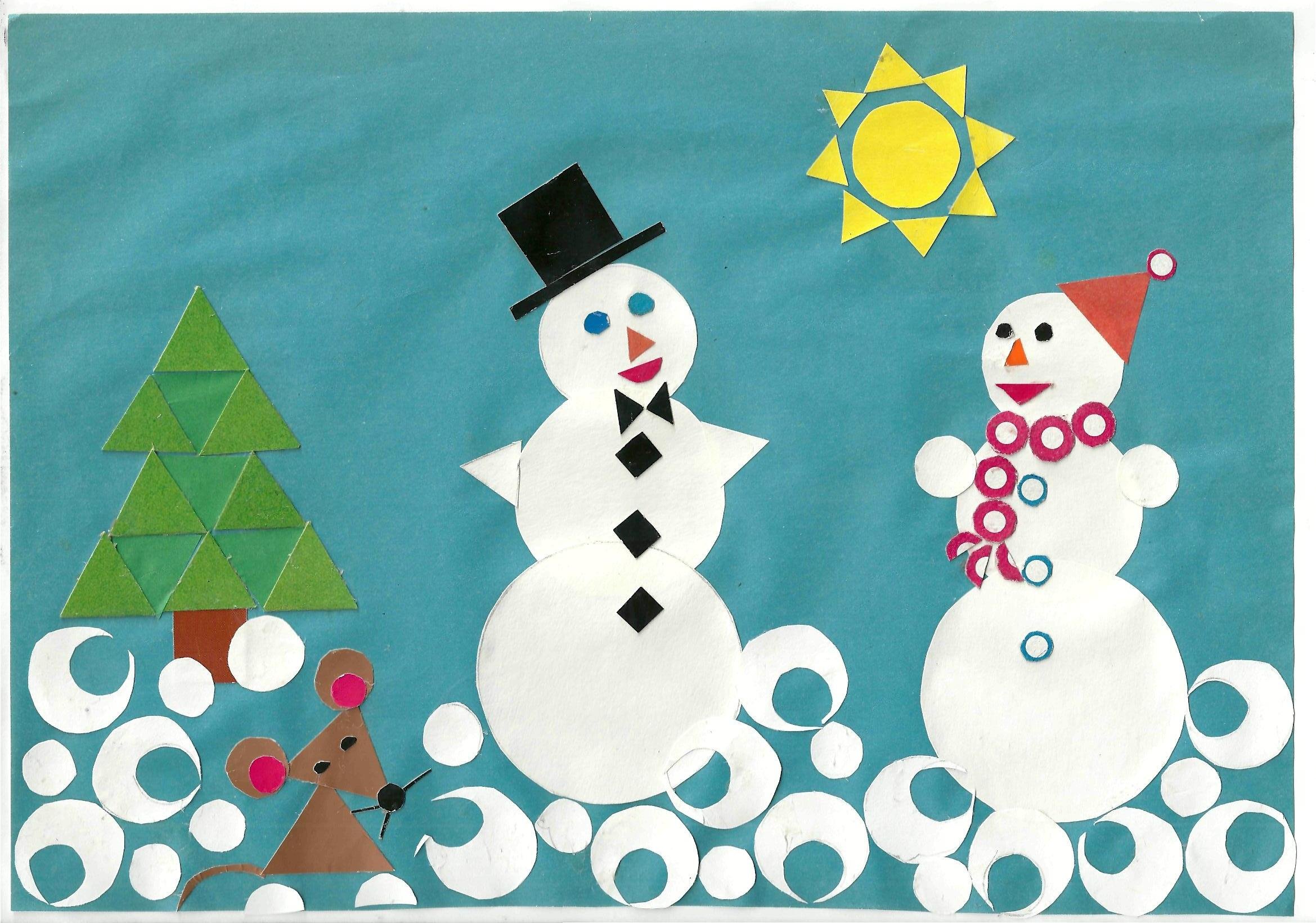 Зимняя аппликация из геометрических фигур