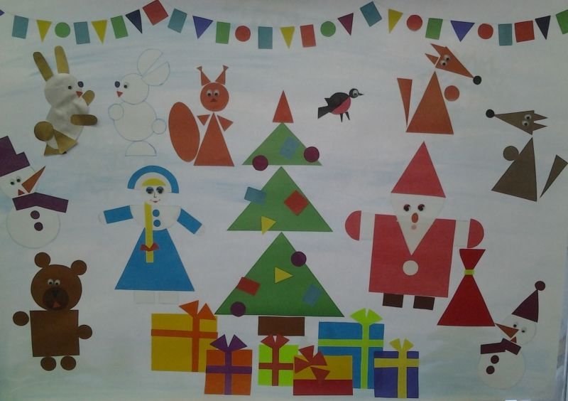 Аппликация из геометрических фигур новый год