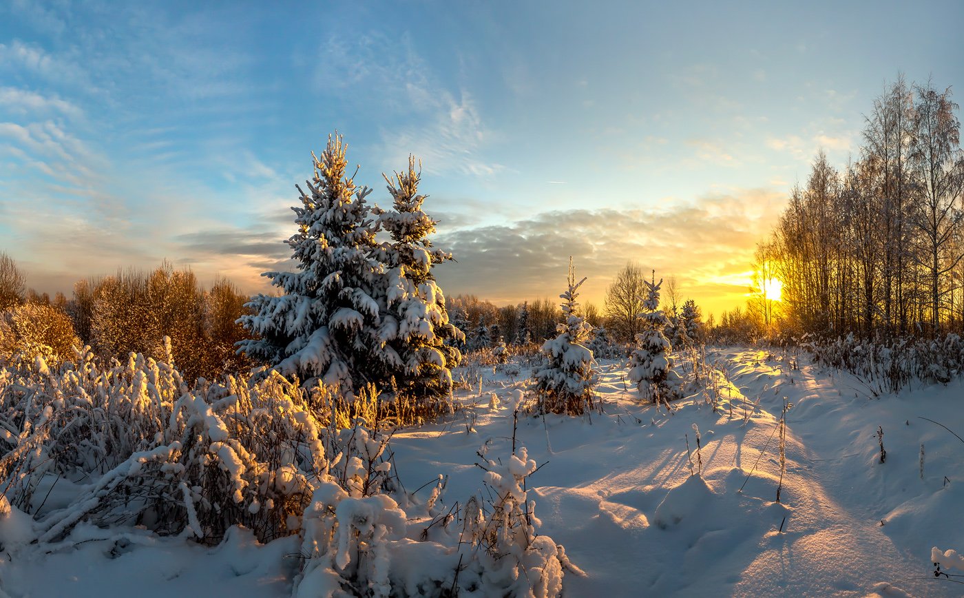 Зимний пейзаж средней полосы России - это волшебное сочетание снега, лесов и замерзших рек. Когда солнце низко стоит на горизонте, создается особая атмосфера, словно все вокруг окутано световым вуалью. Белоснежные поляны и деревья, покрытые инеем, создают удивительный контраст с яркими красками неба. В таких местах можно провести часы, прогуливаясь по тихим тропинкам и наслаждаясь тишиной и спокойствием, которые только зима может подарить. Кроме того, этот регион славится своими зимними видами спорта, такими как лыжи и коньки, которые позволяют людям активно проводить время на природе. Зимний пейзаж средней полосы России - это настоящий рай для любителей зимних красот и активного отдыха.