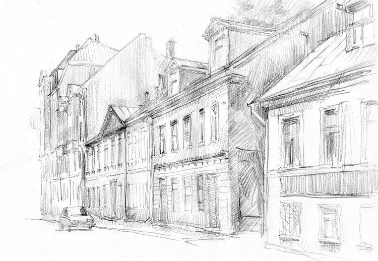 Карандашные зарисовки городского пейзажа