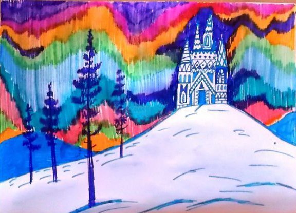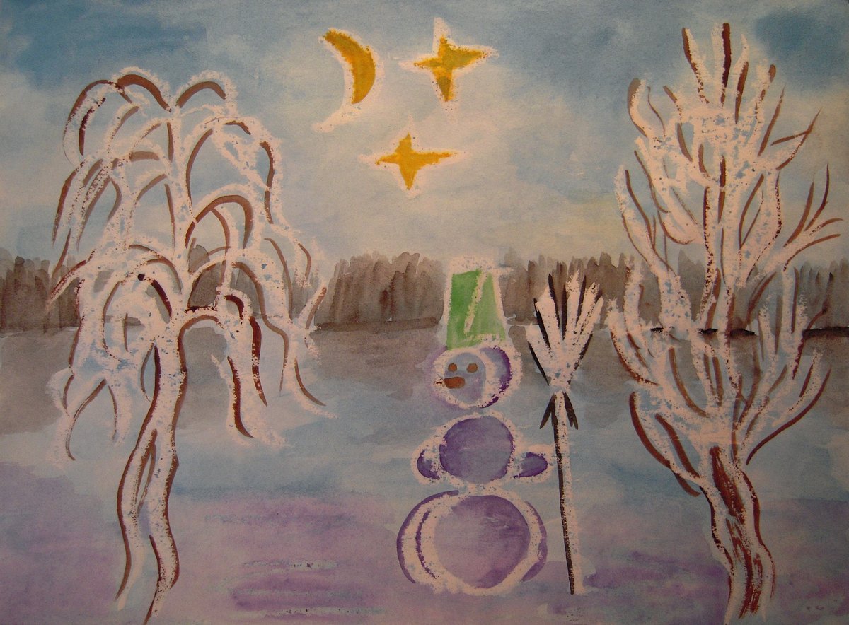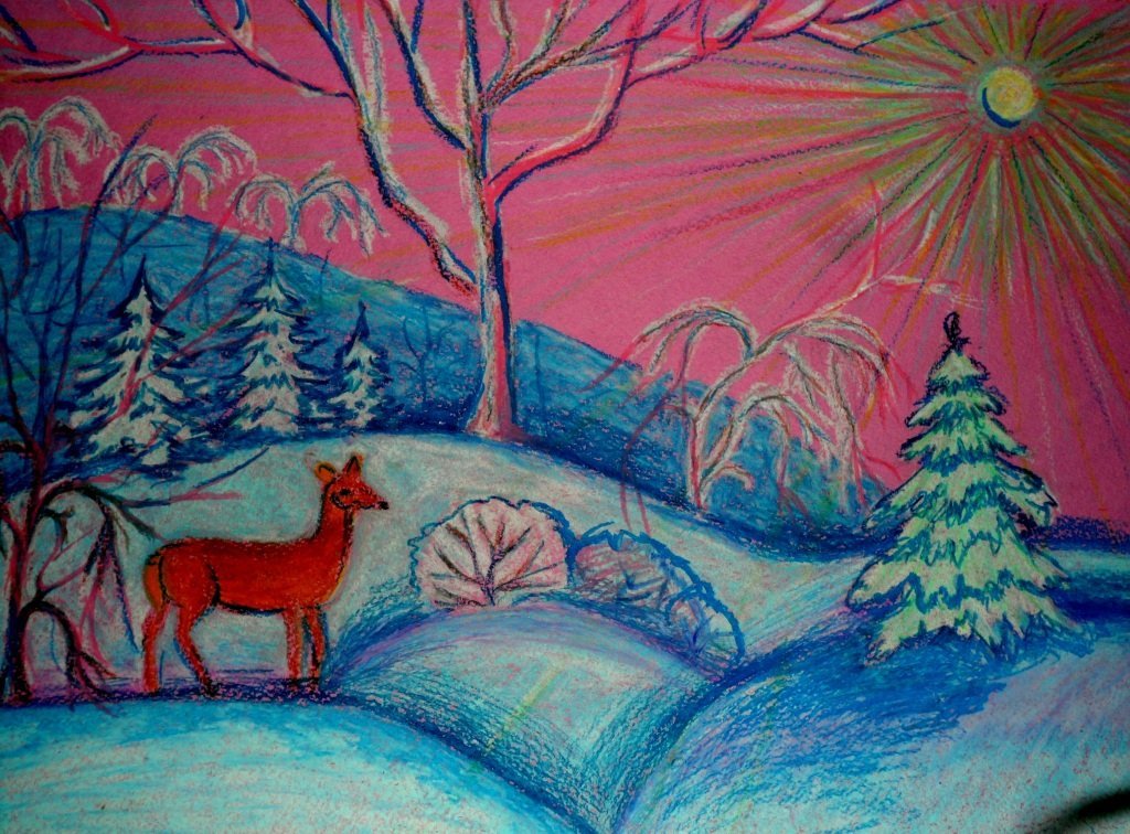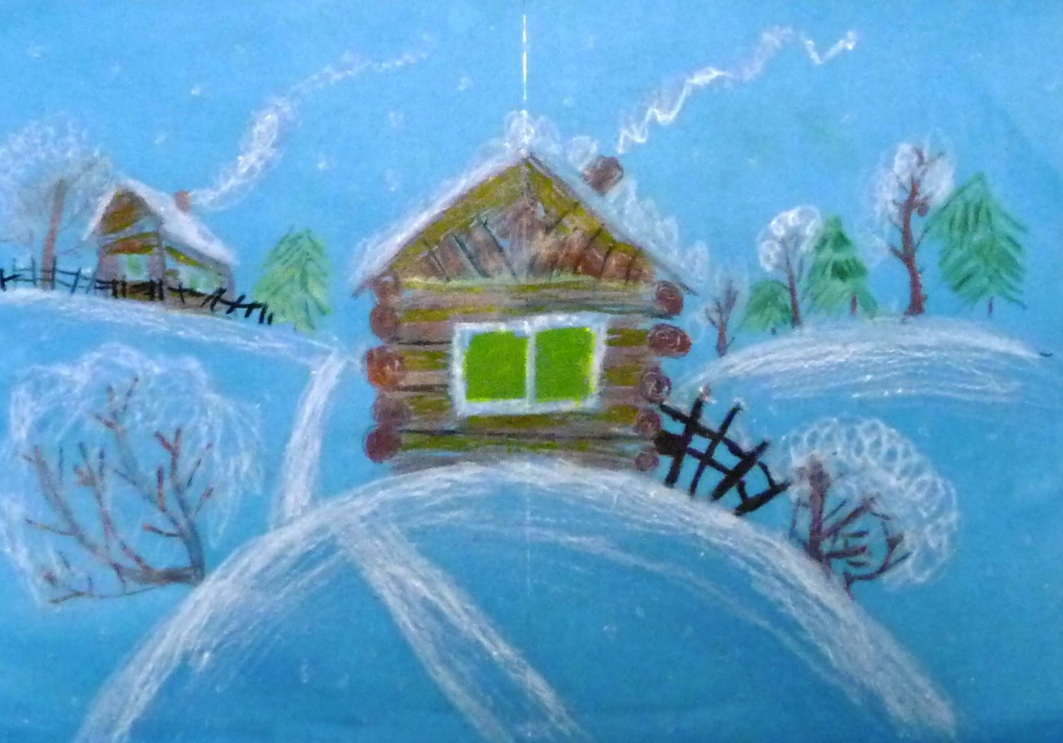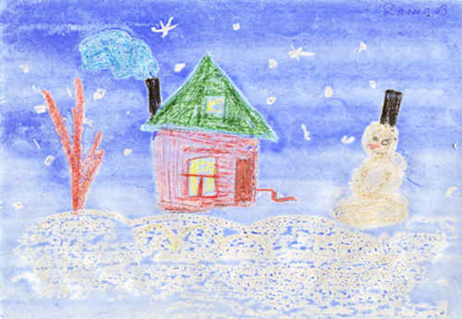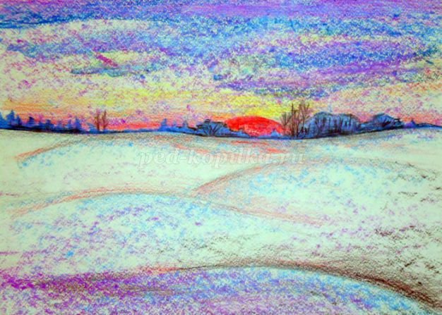 Рисунок восковыми мелками зимний пейзаж (50 фото)