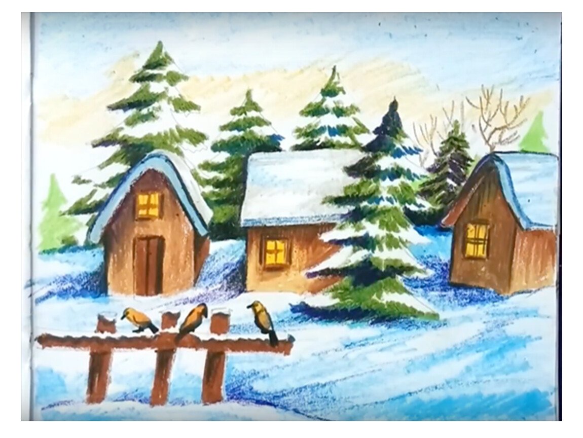 Зимний домик рисование