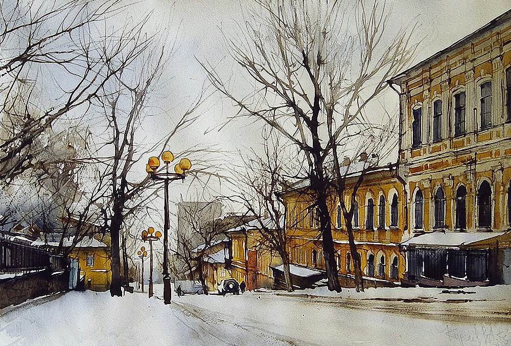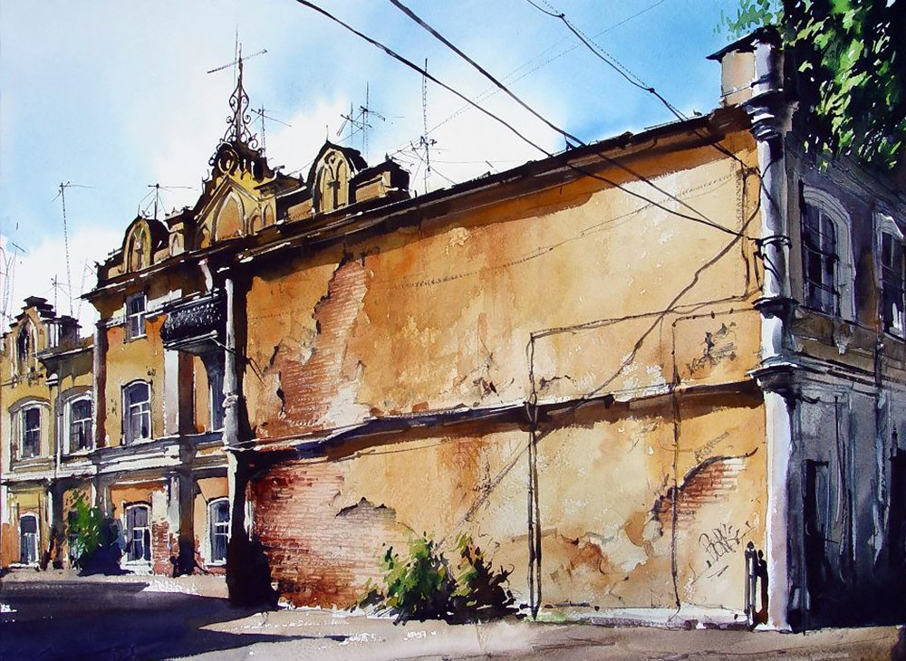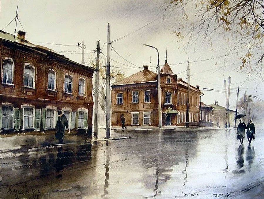 Художник Курсеев старый Саратов акварели