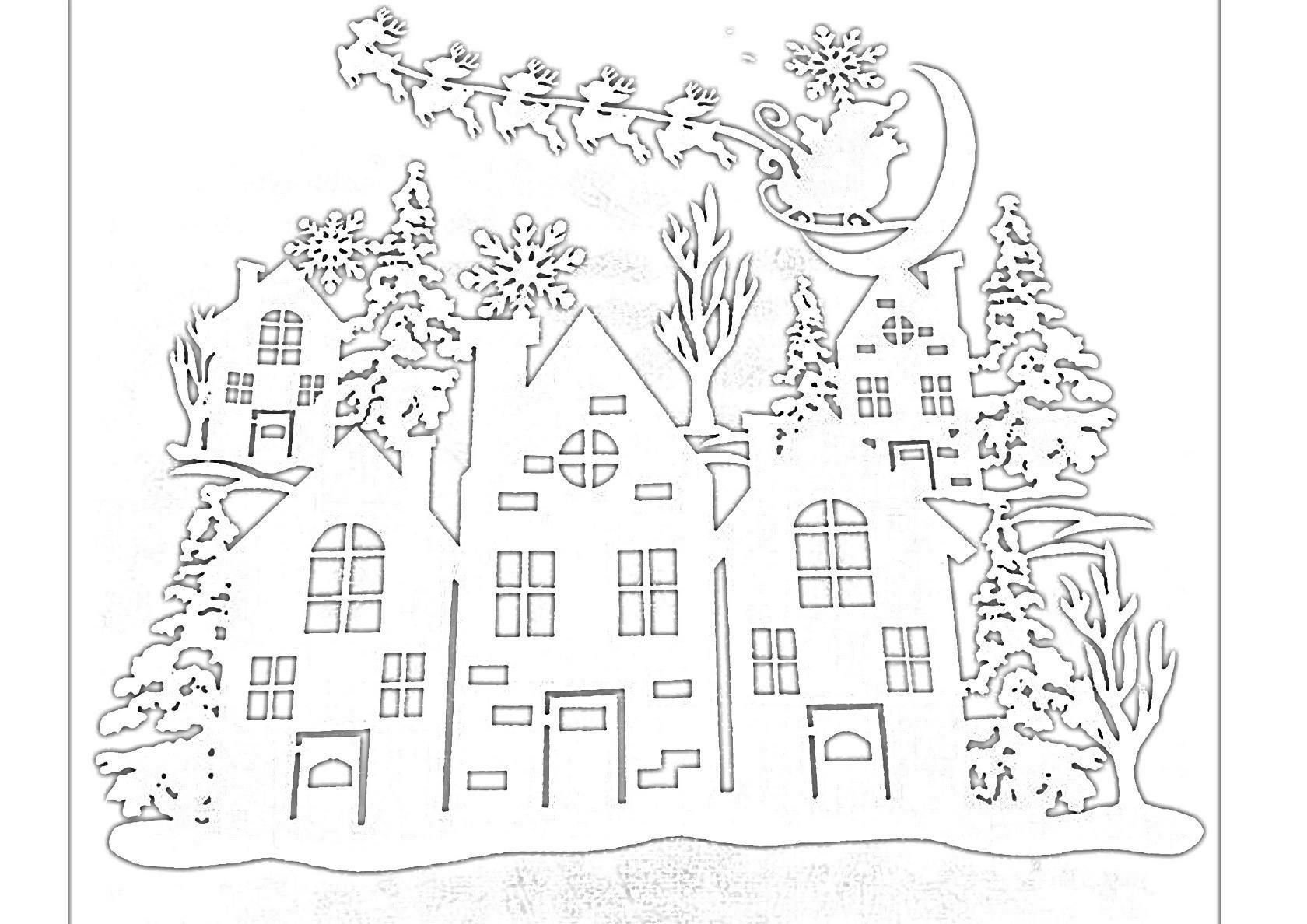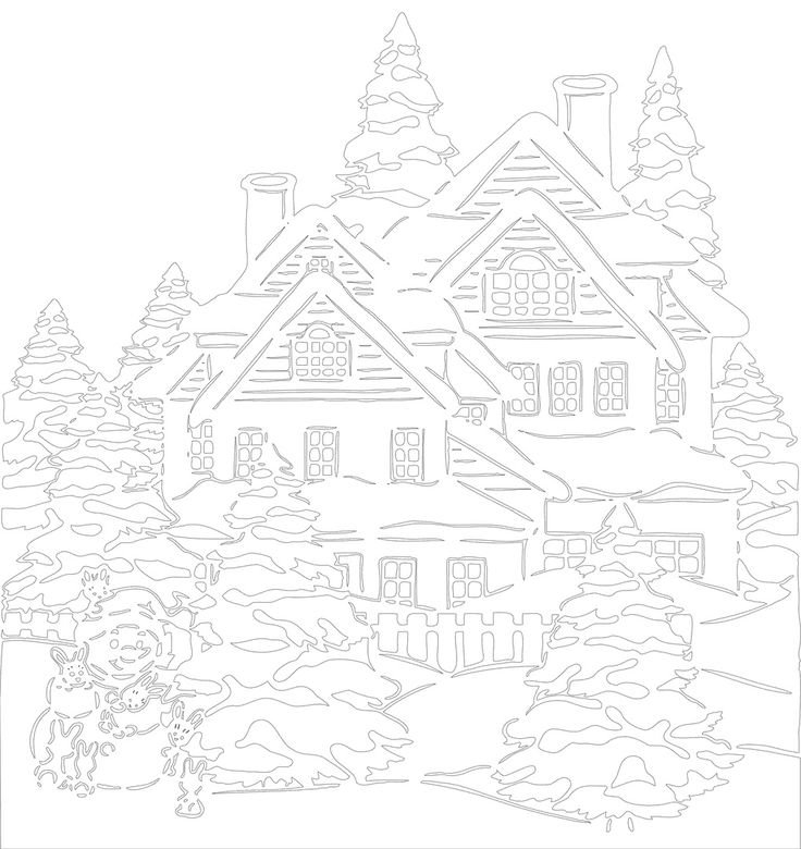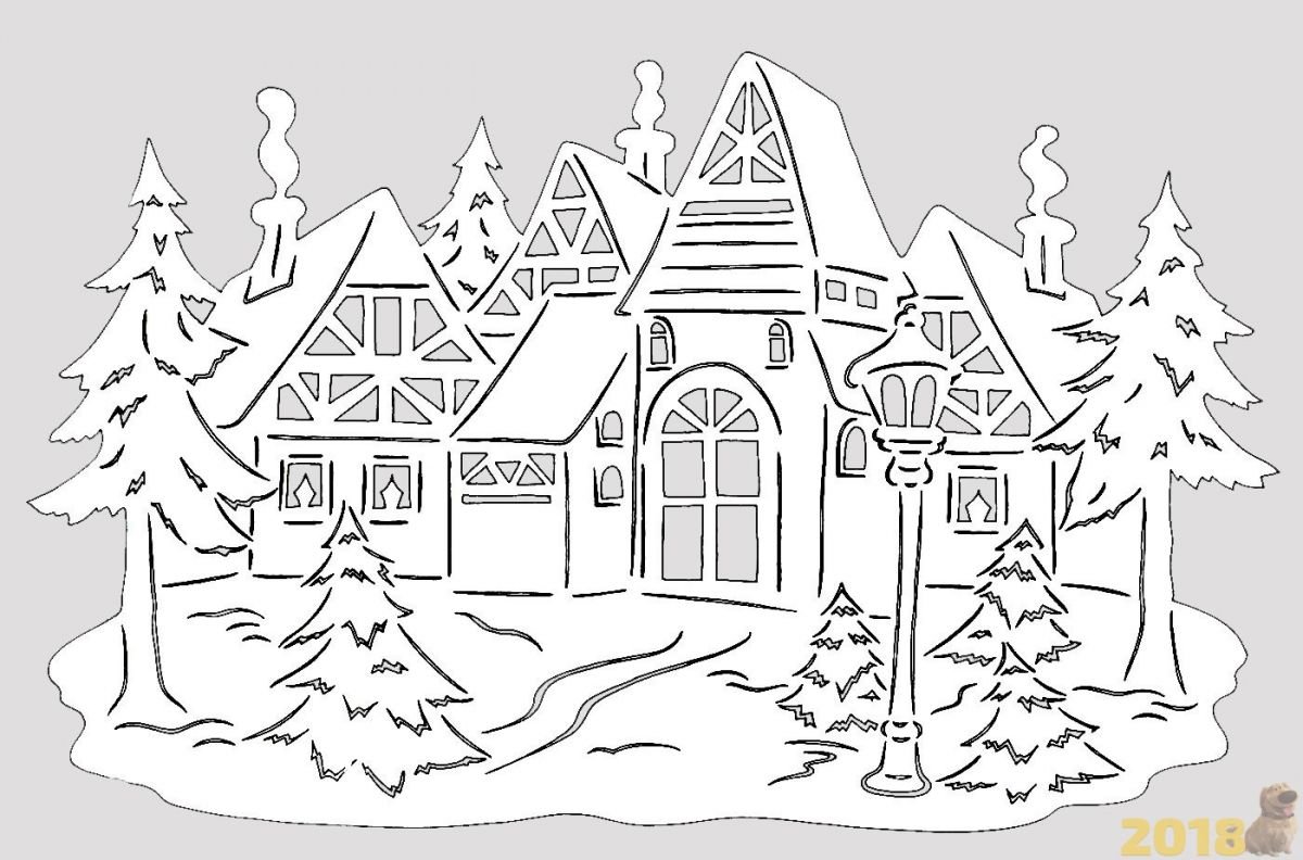 Трафареты зимних домиков на окна