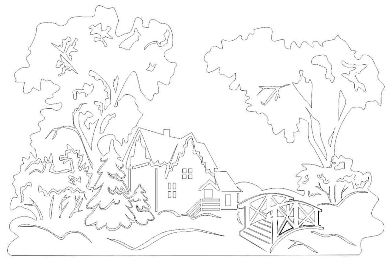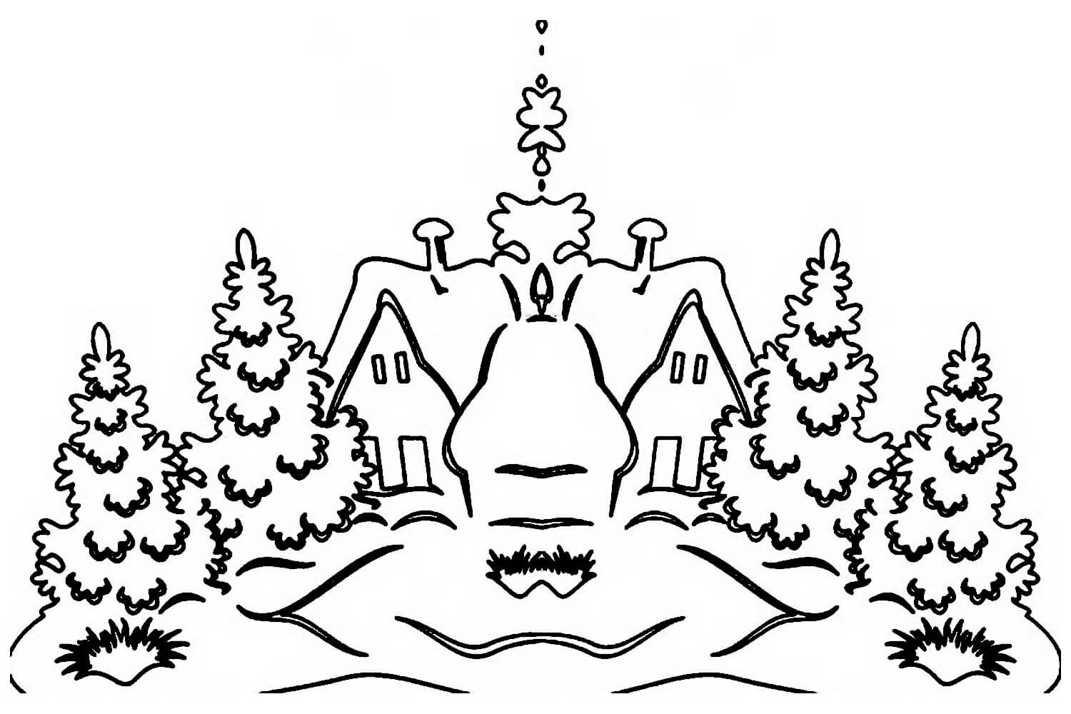 Зимний пейзаж раскраска