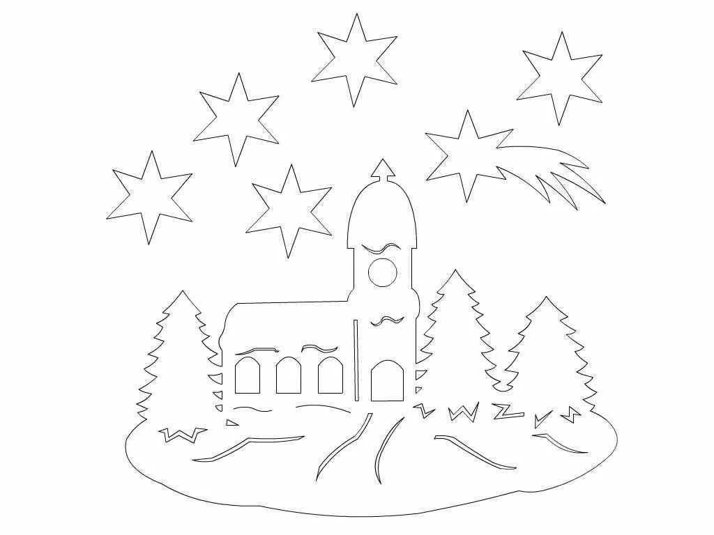 Новогодний пейзаж раскраска