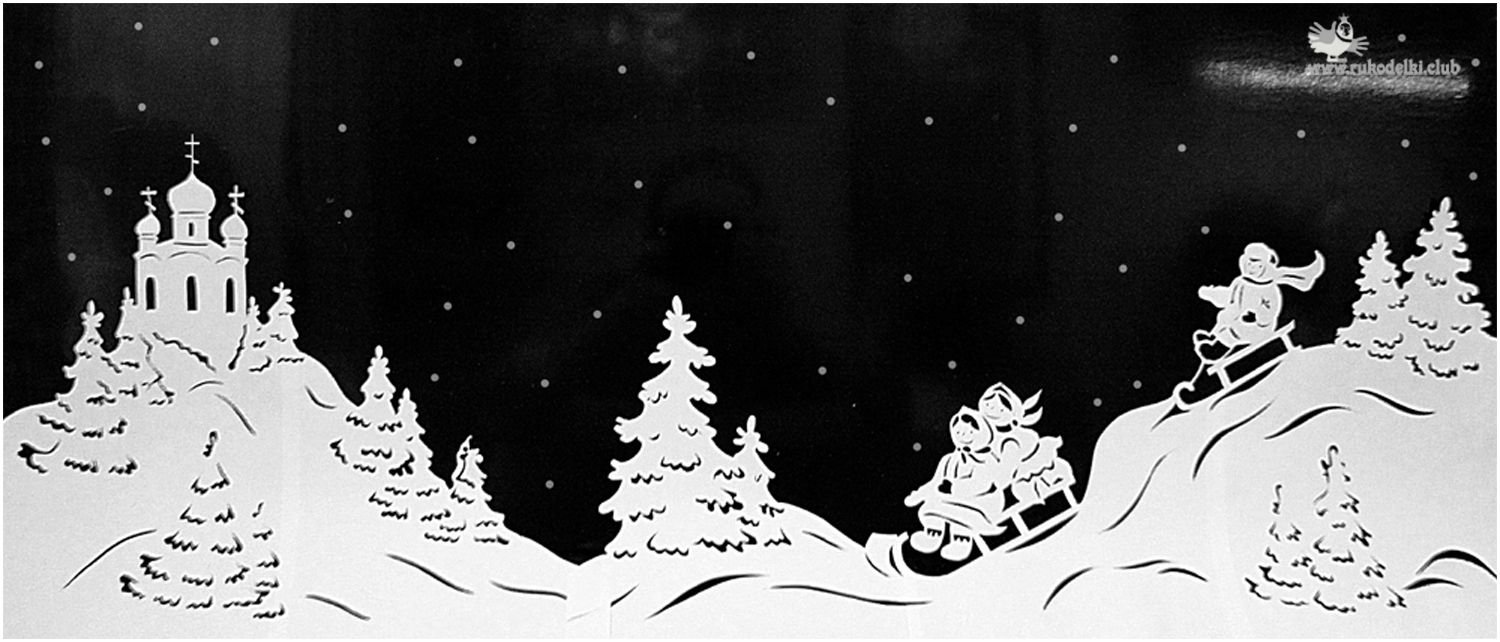 Новогодние пейзажи трафареты на окна