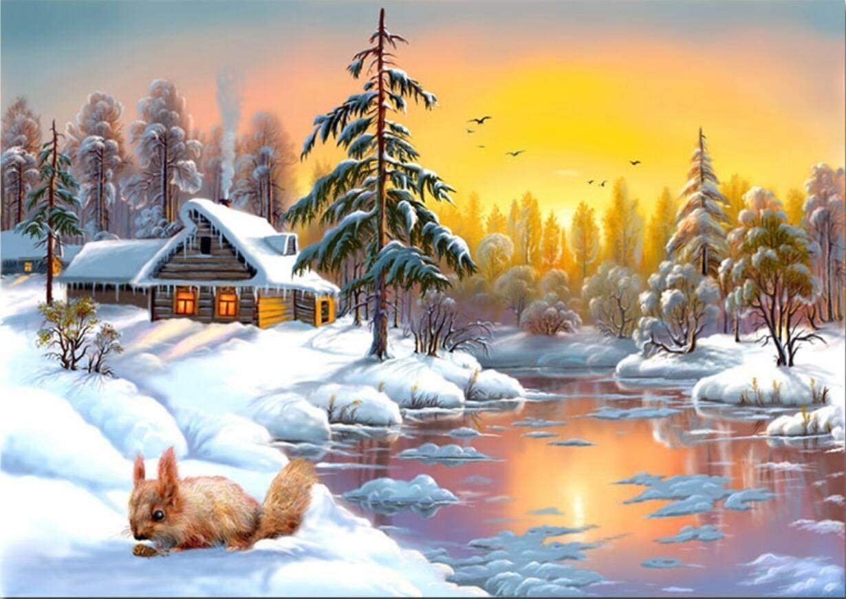 Алмазная мозаика алмазная живопись "морозные Сумерки" 45х80см