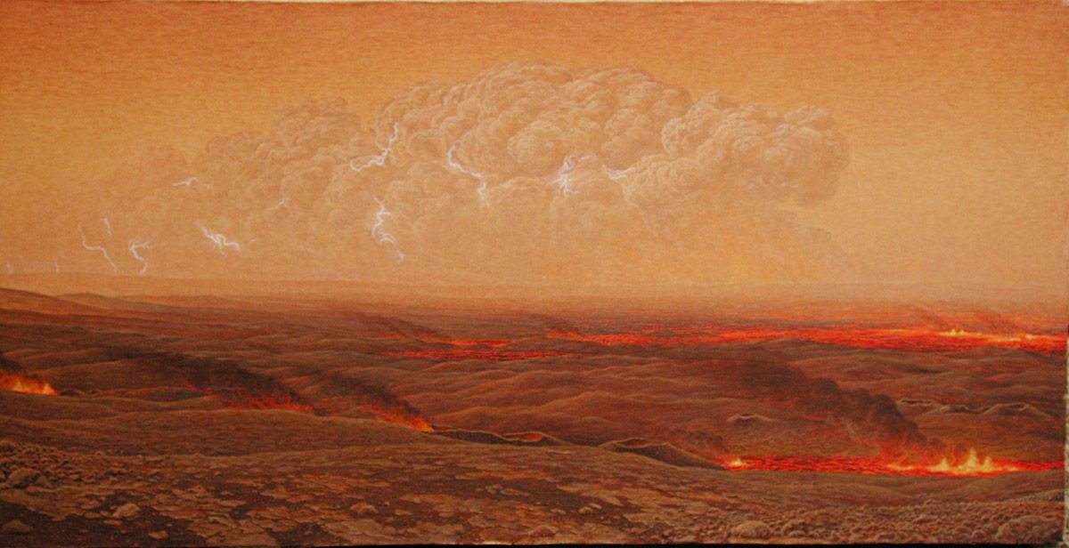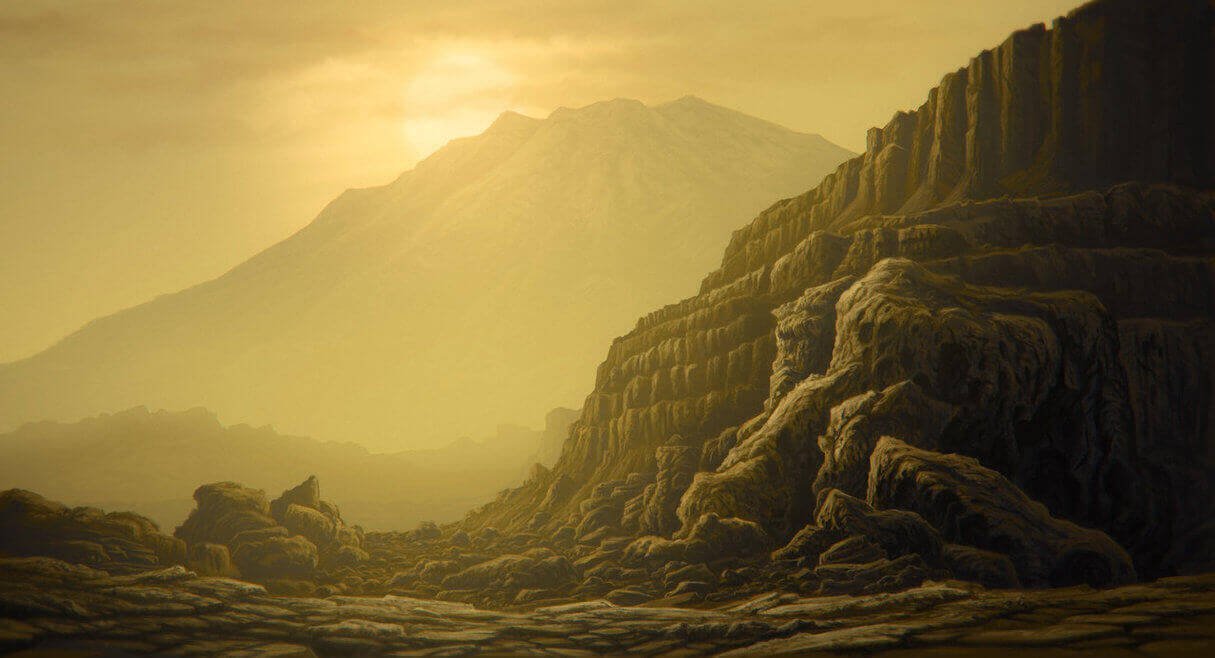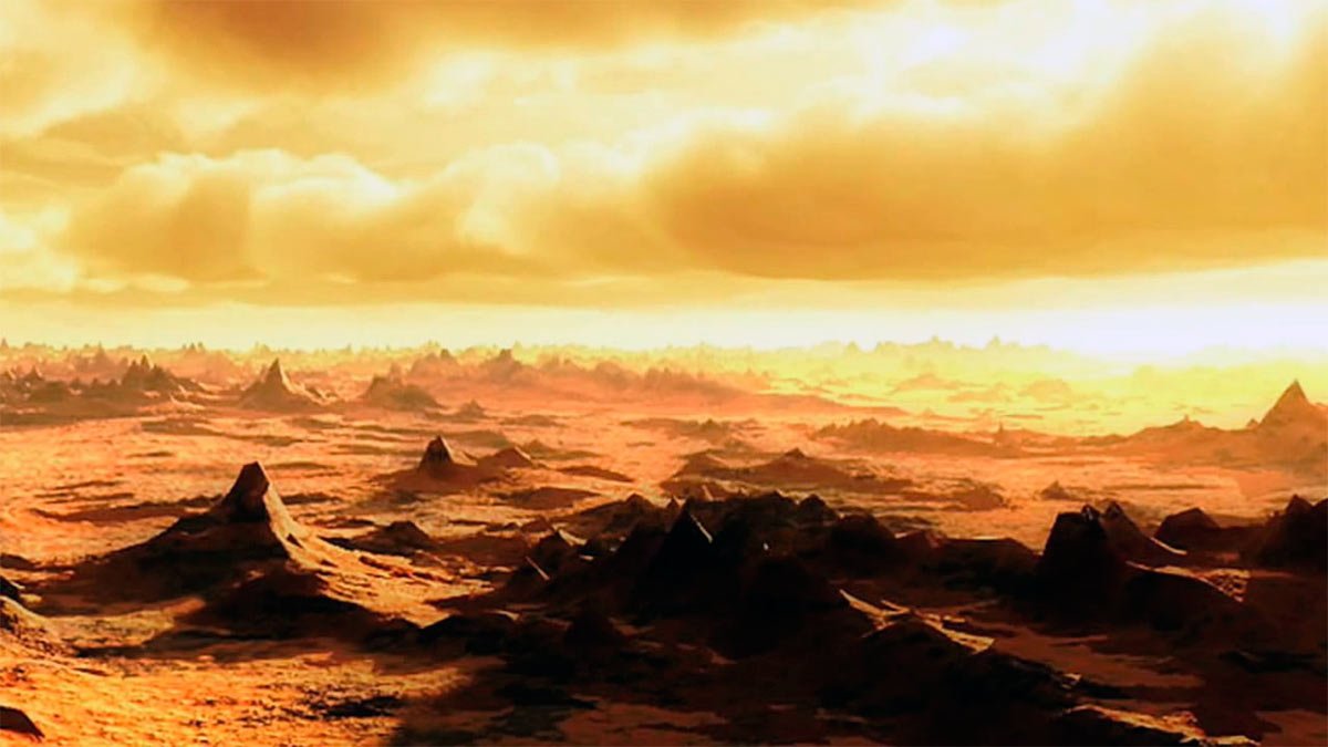 Пейзаж Венеры - это удивительное сочетание красоты и загадочности. Восхитительные вулканы, горящие розовым огнем, создают мрачную и таинственную атмосферу на этой планете. Густые облака серого цвета парят над поверхностью, добавляя чарующую драматичность к пейзажу. Безжизненная пустыня и бескрайние равнины скалистых горных хребтов делают Венеру похожей на заброшенный и неприступный мир. Но несмотря на свою грусть, пейзаж Венеры все равно притягивает взгляд своей уникальной и неповторимой красотой.