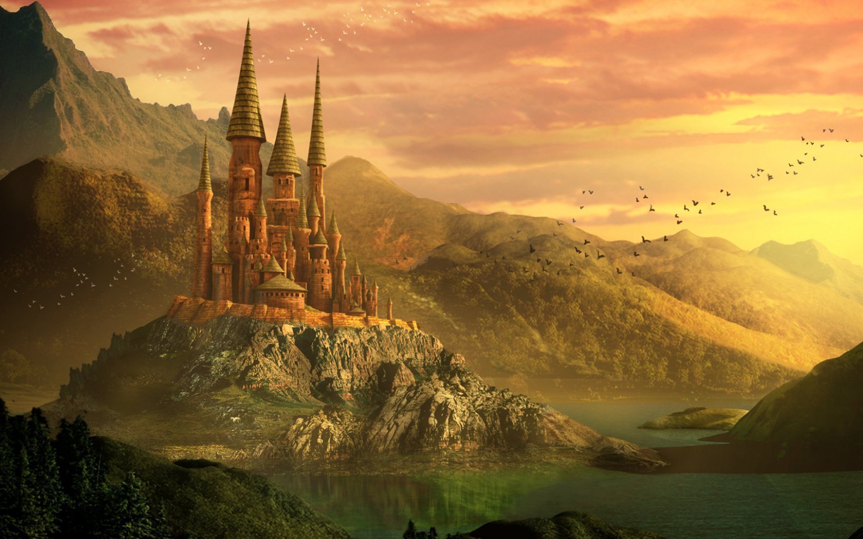 Замок Гарри Поттера и озеро
