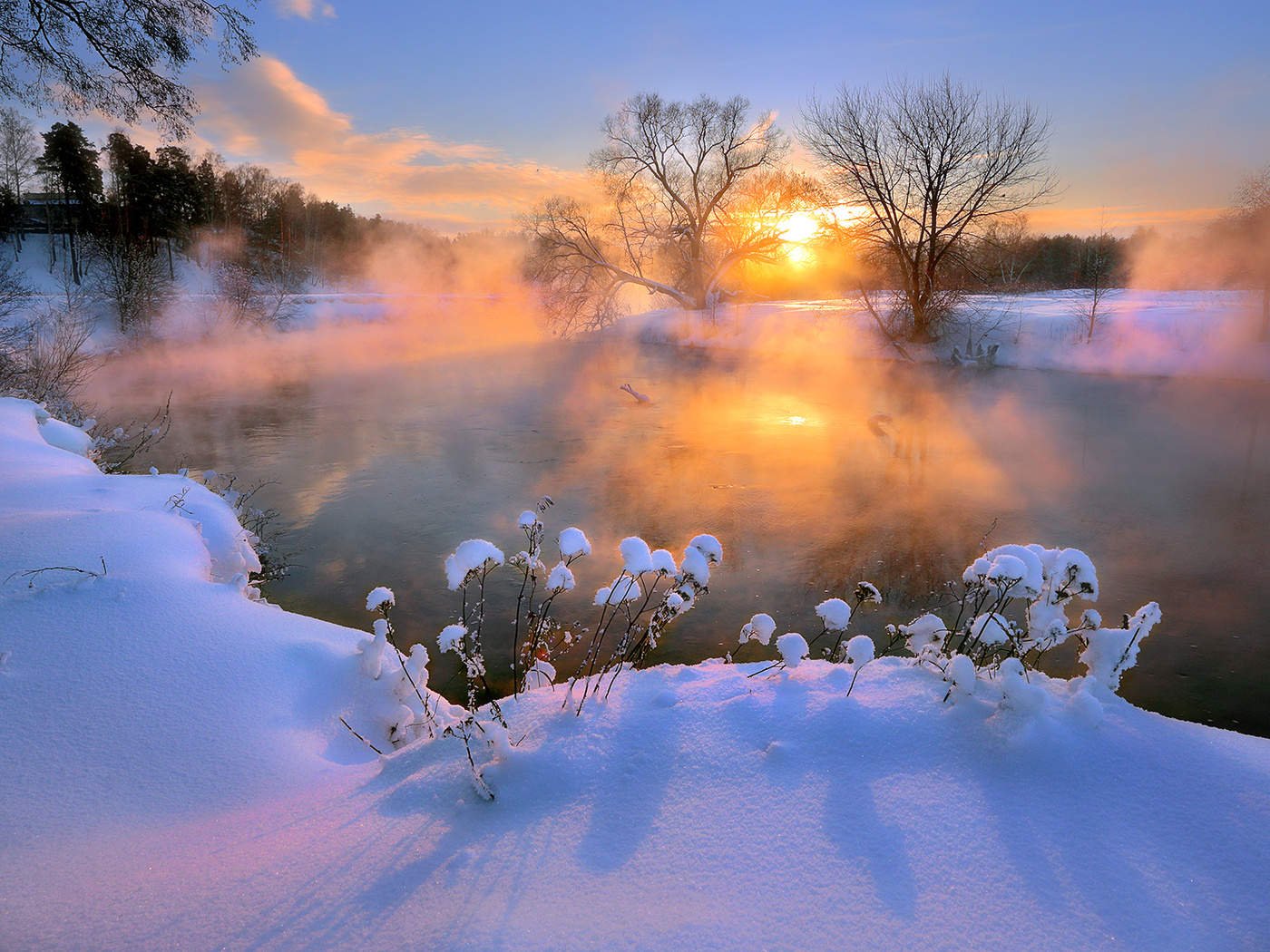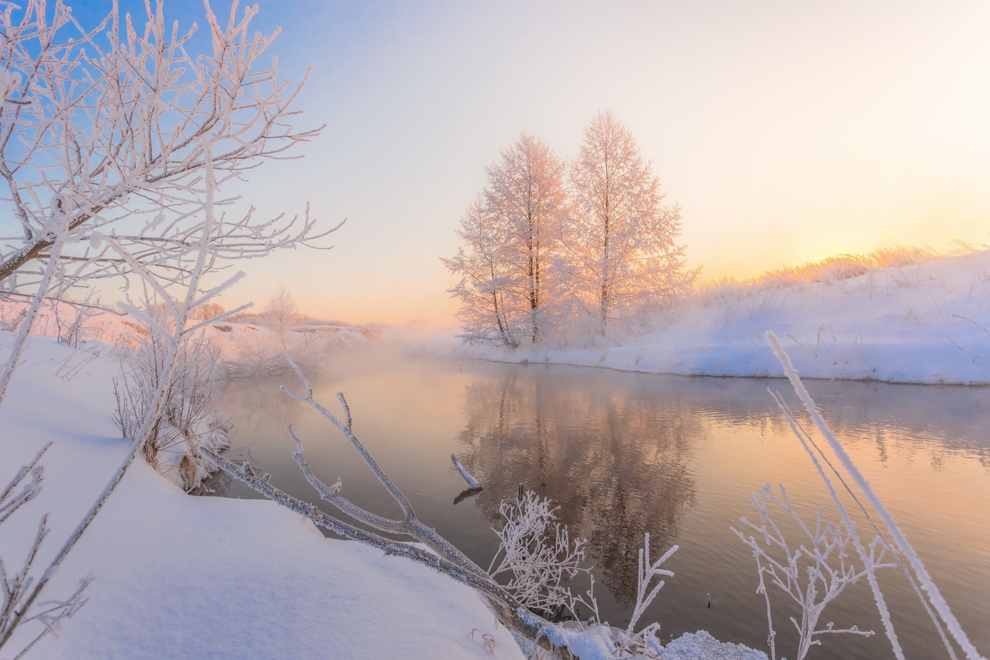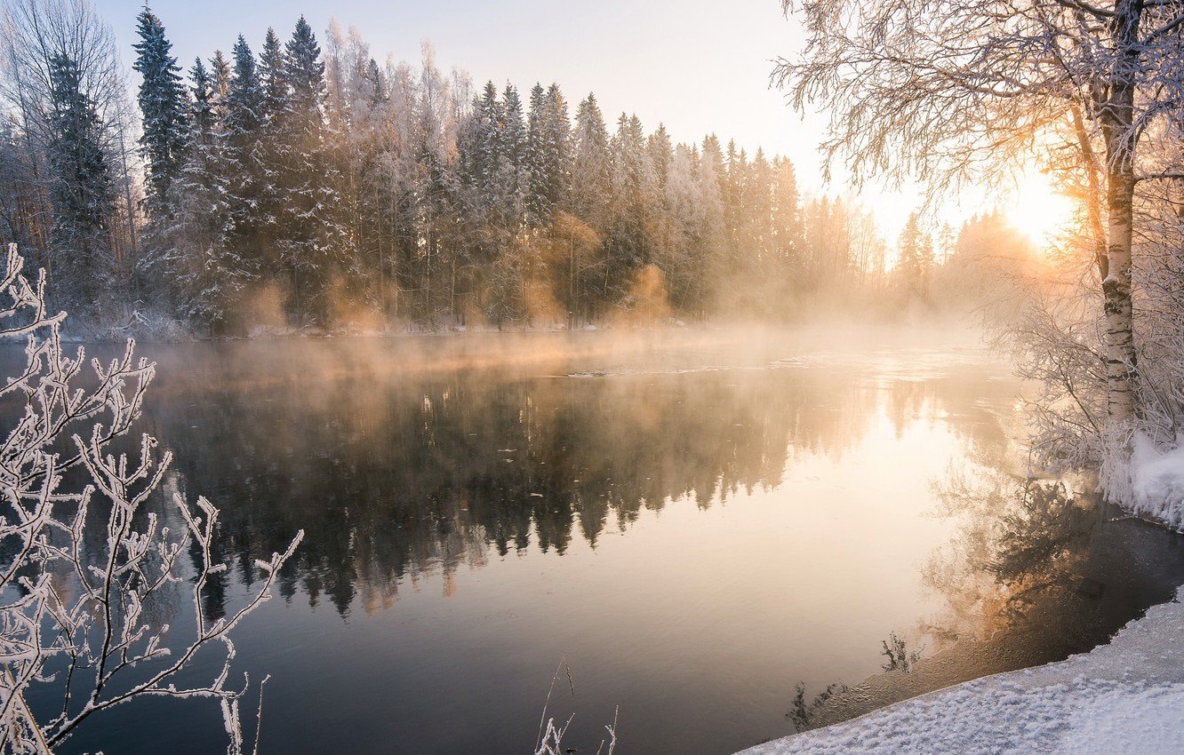 Зима река солнце