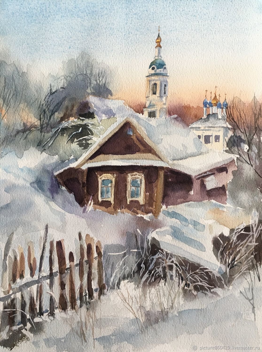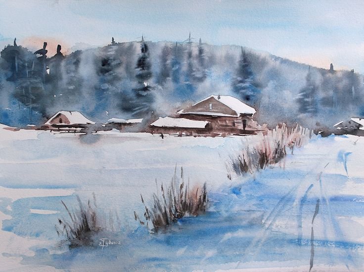 Екатерина Губина акварель зимний пейзаж