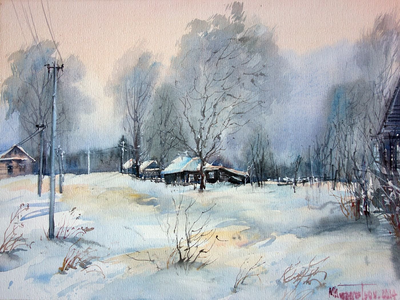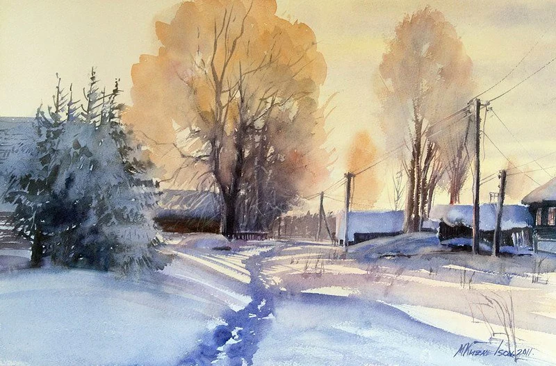 Кузнецов Михаил -акварель, зимний пейзаж