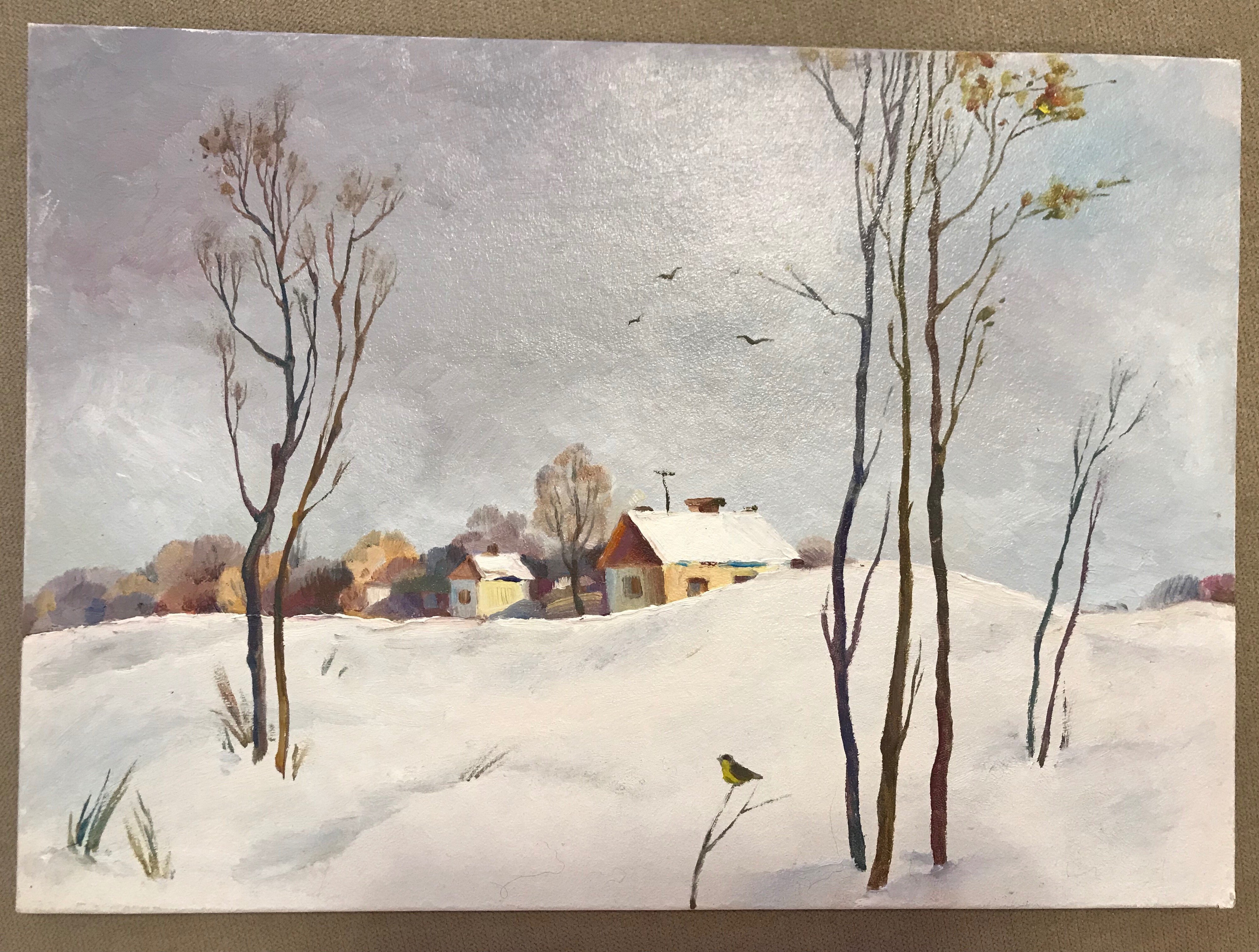 Зимний пейзаж маслом