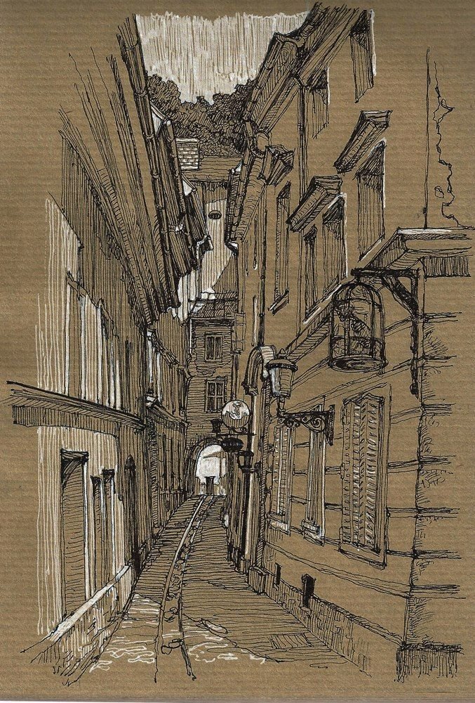 Городской пейзаж тушью