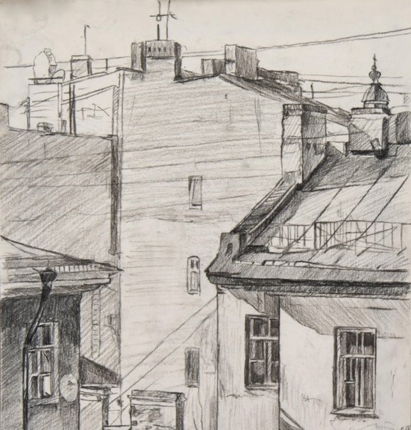 Городской пейзаж карандашом