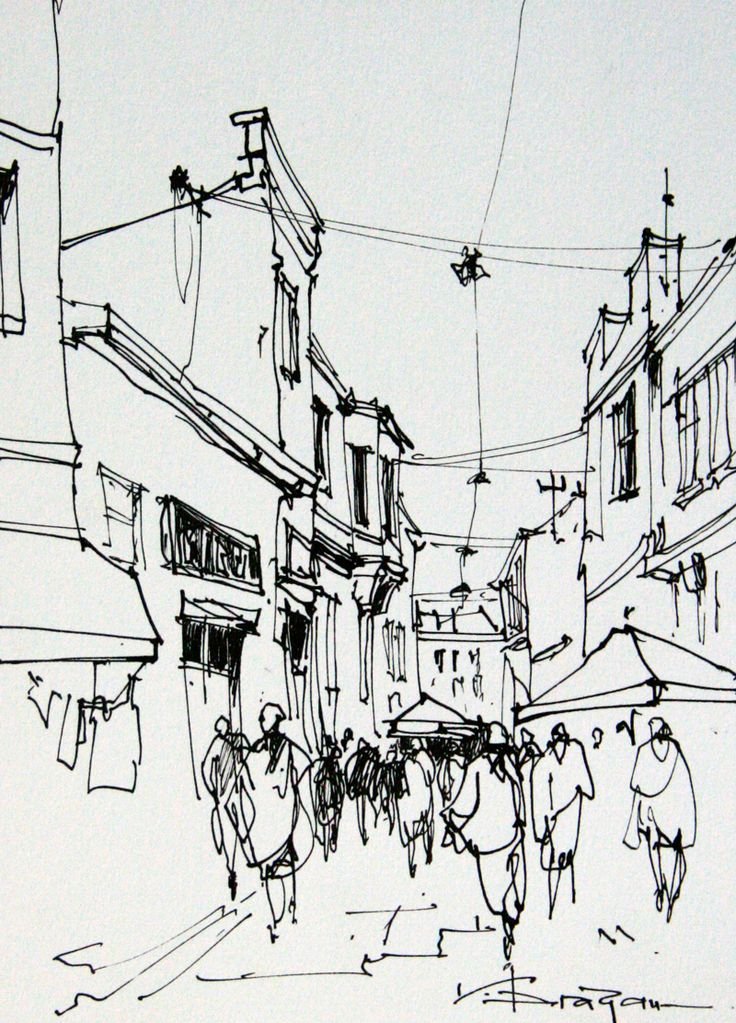 Зарисовки городского пейзажа графика (50 фото)