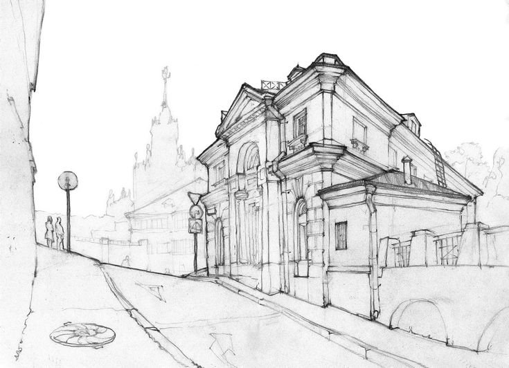 Городской пейзаж линейная перспектива скетч