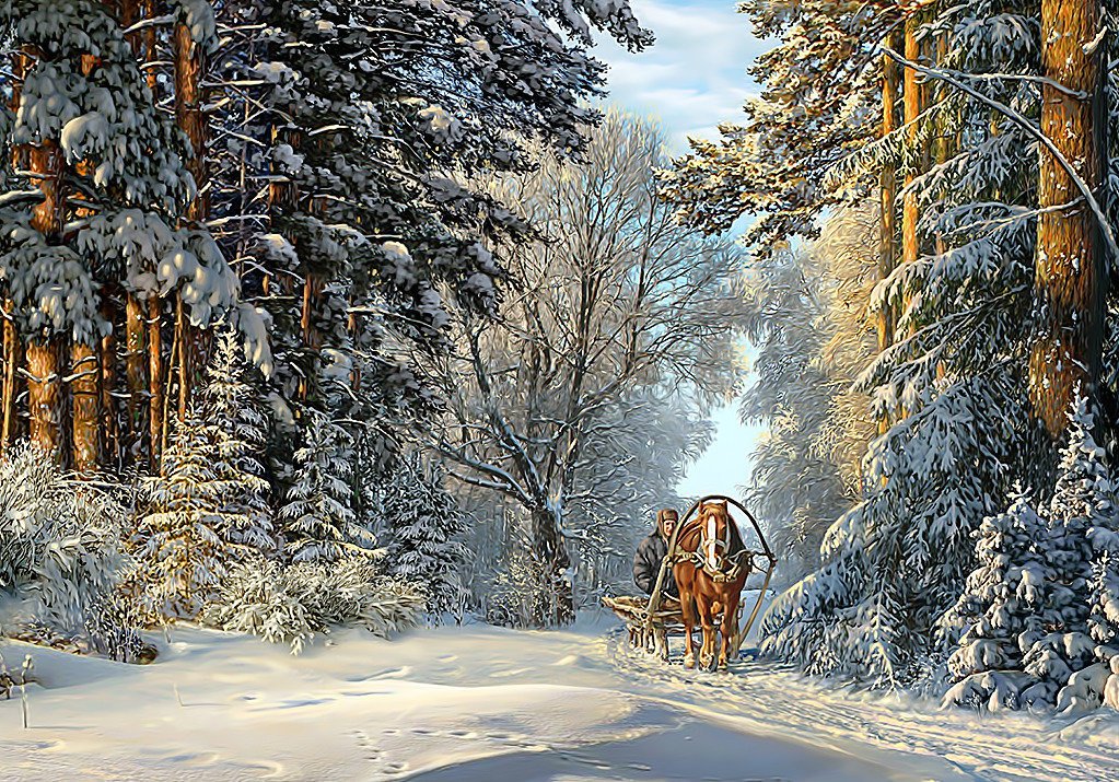 Зима художник-пейзажист Евгений Карлович