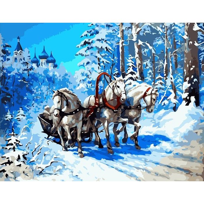 Алмазная мозаика тройка лошадей зимняя