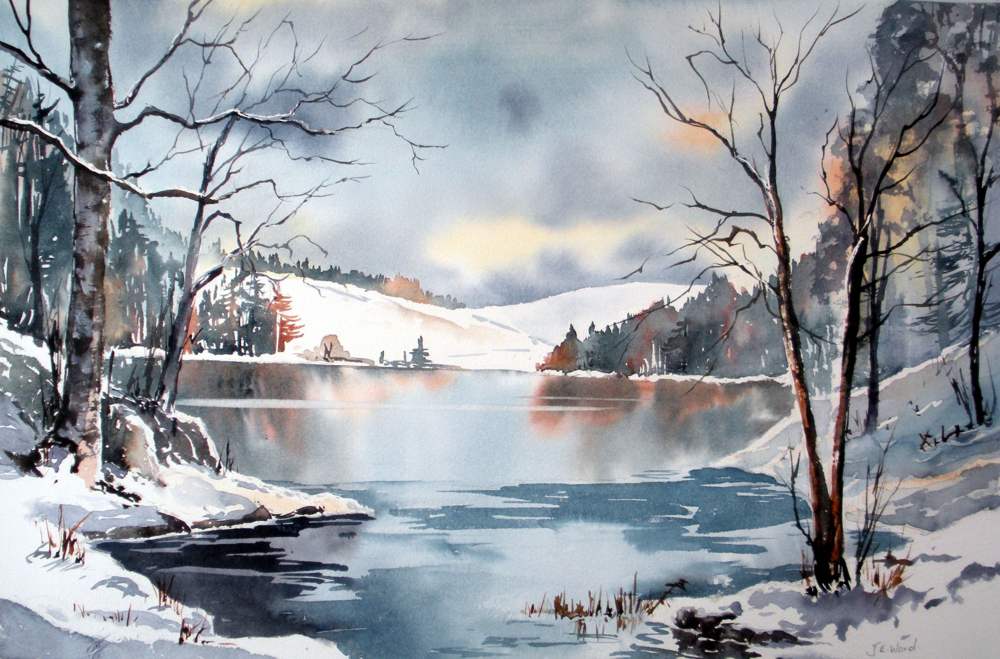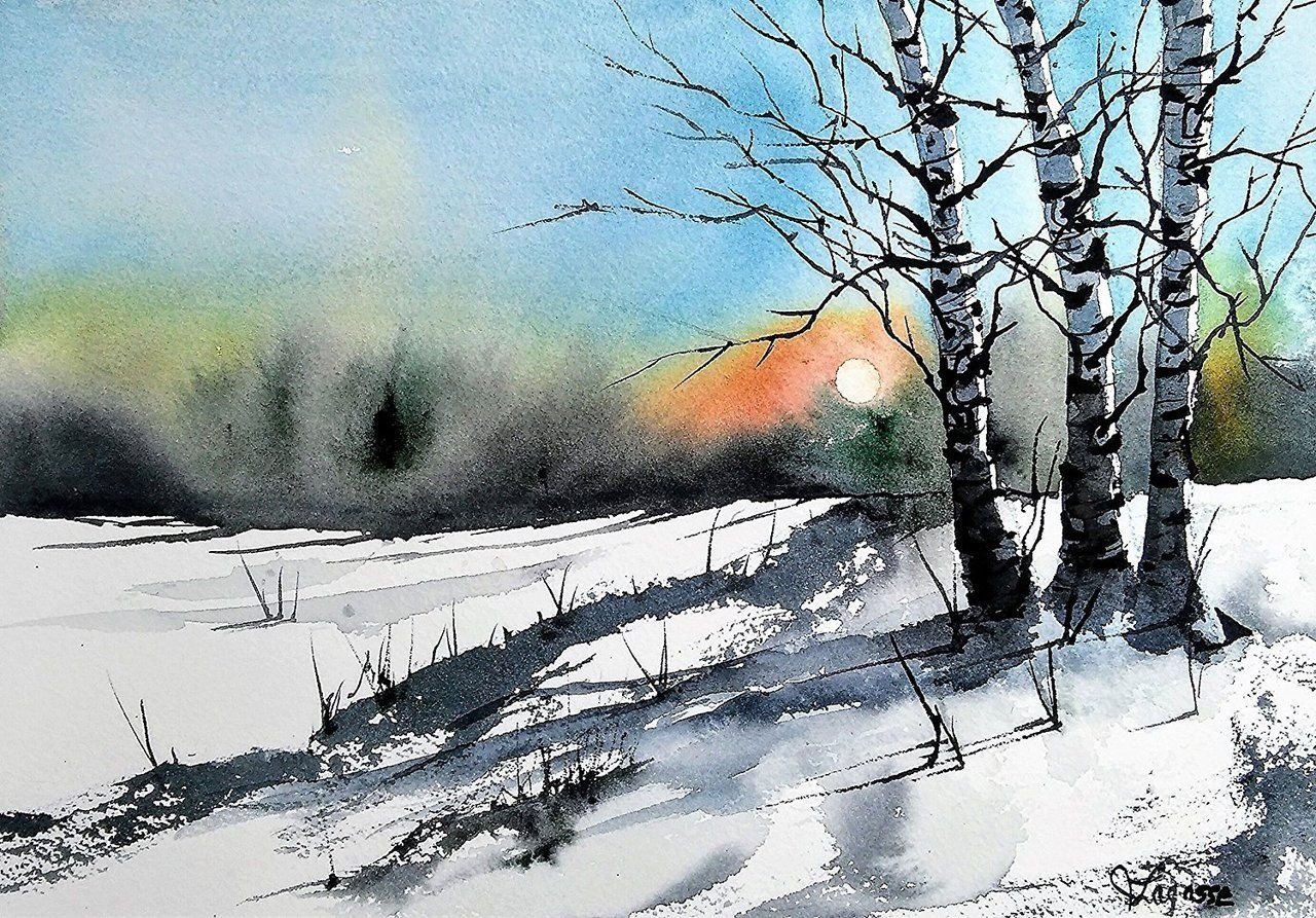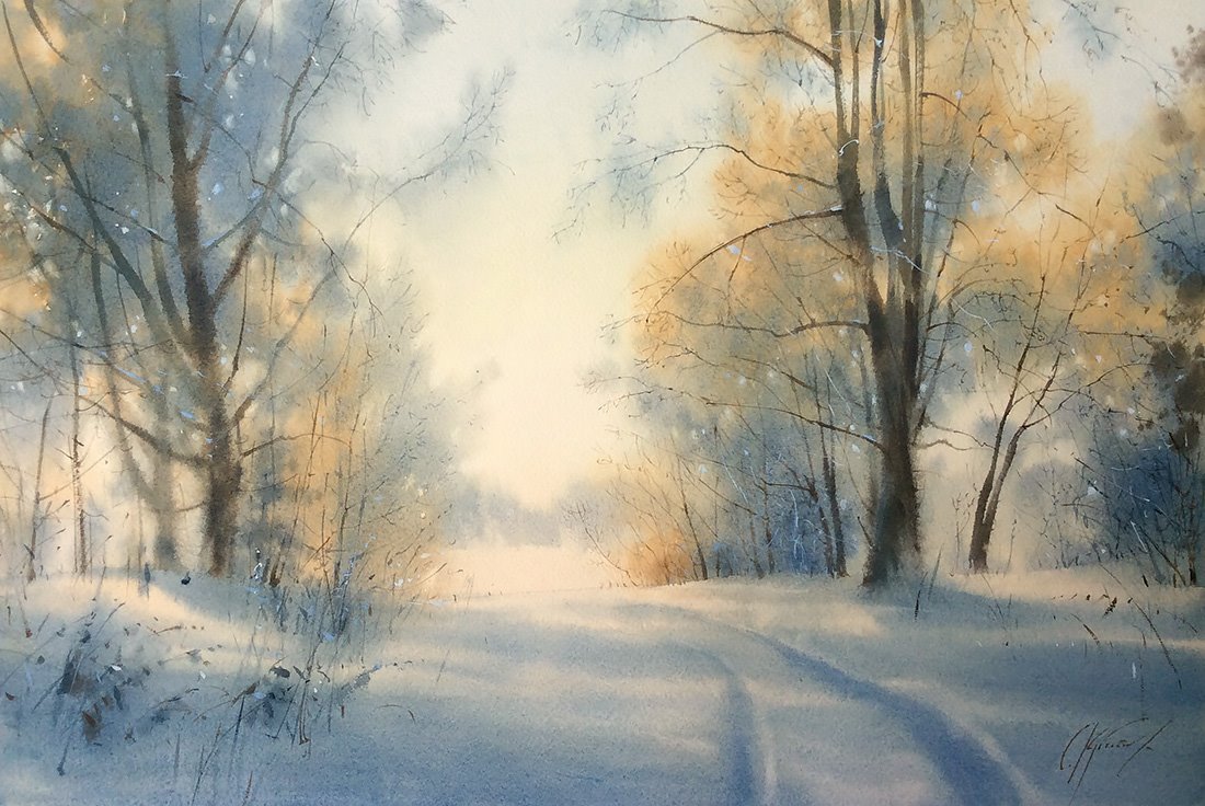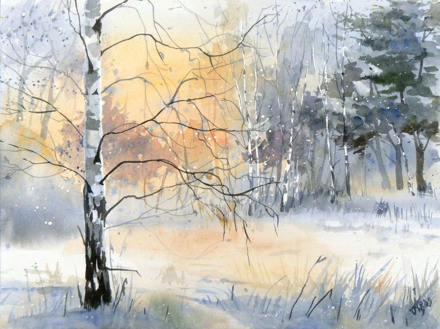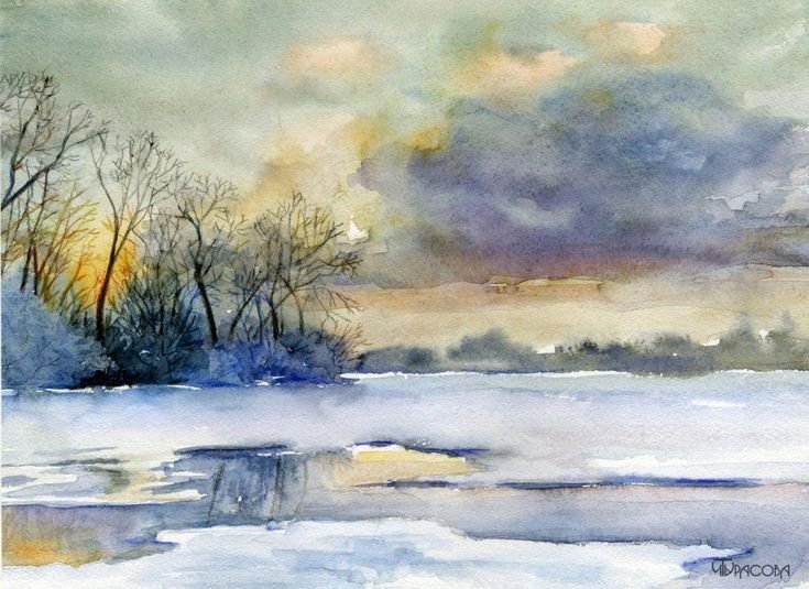Акварельная живопись пейзажи зима