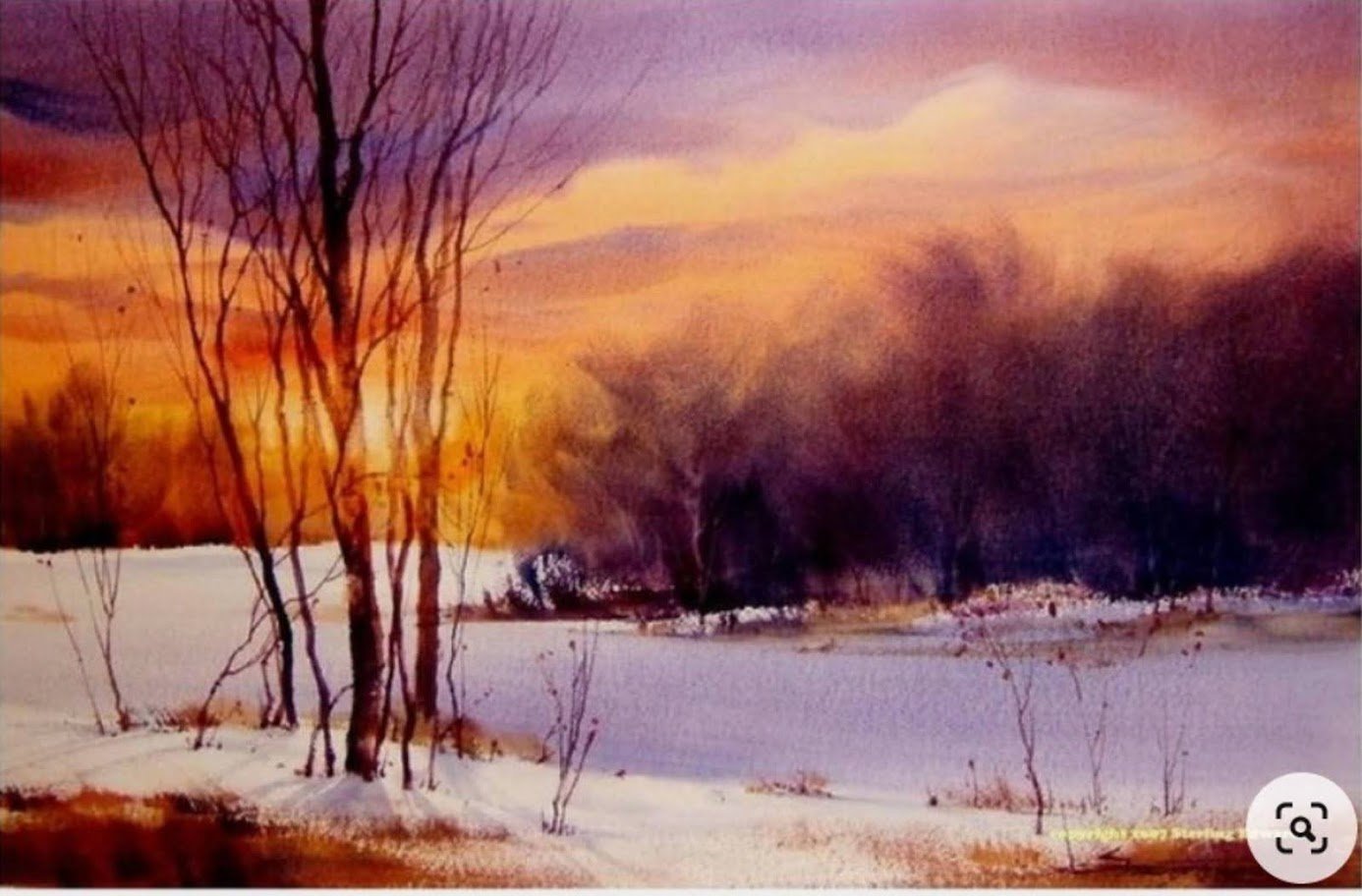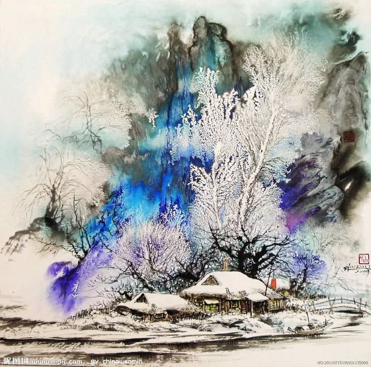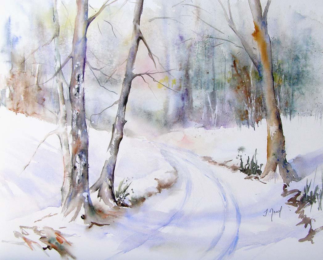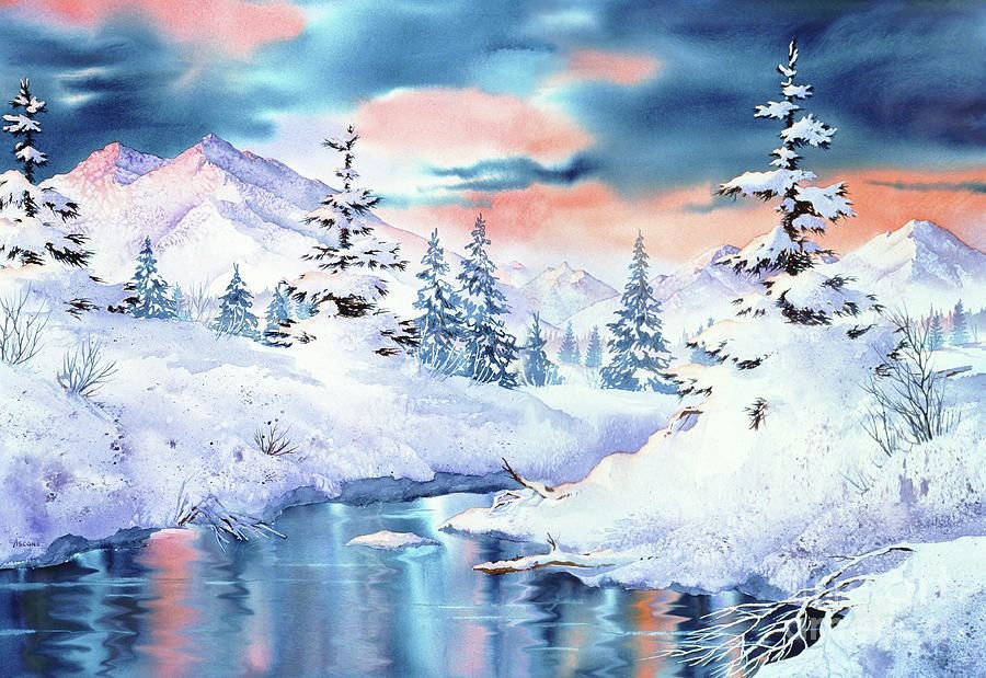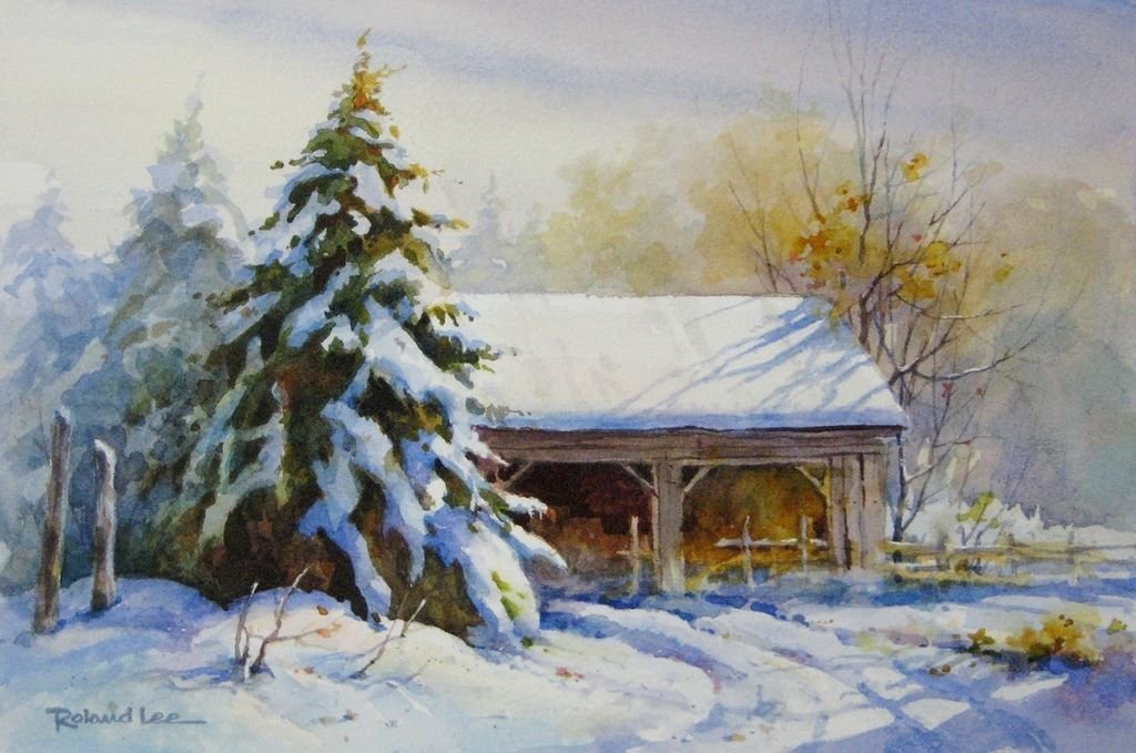 Акварельная живопись пейзажи зима