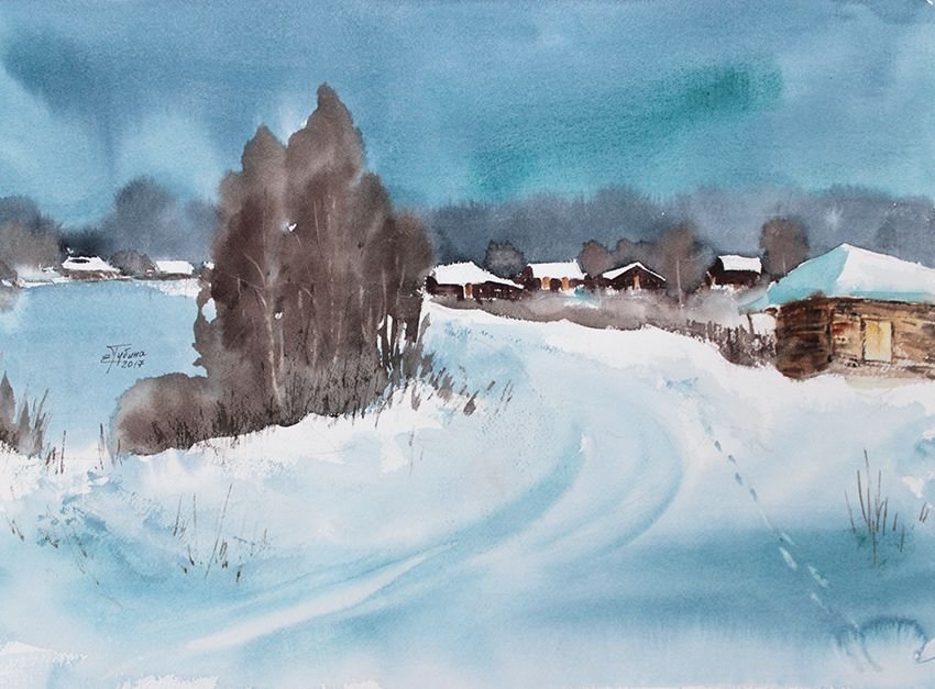 Екатерина Губина акварель зимний пейзаж