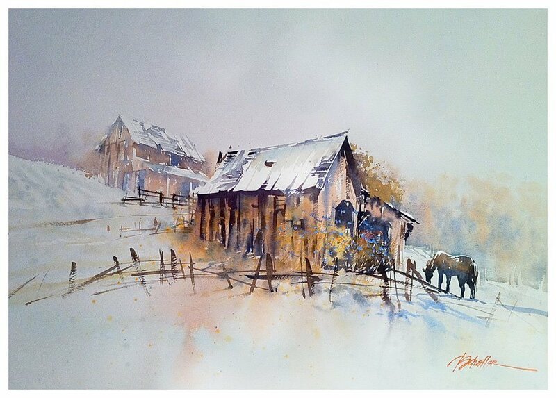 Томас Шаллер акварель зимняя