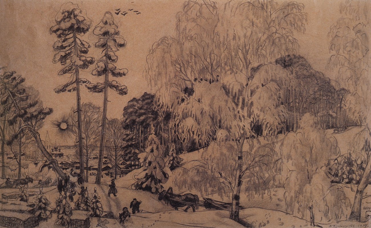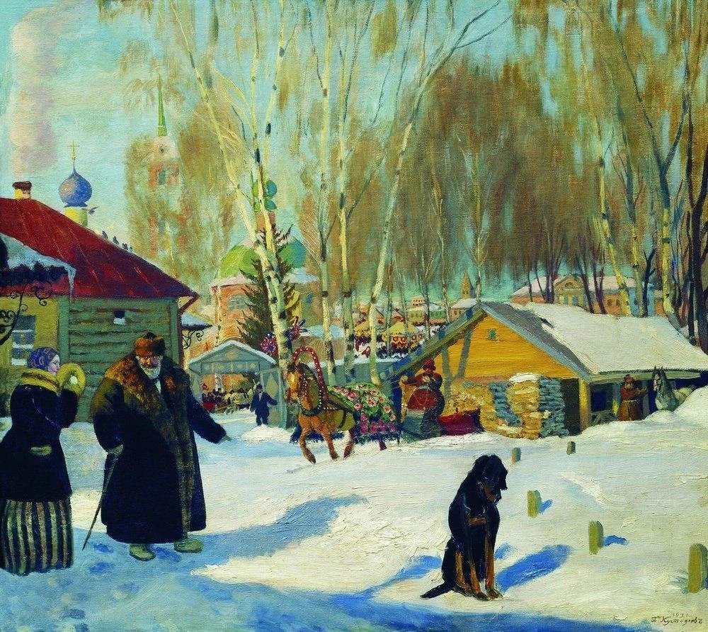 Борис Михайлович Кустодиев «елочный торг», 1918 год