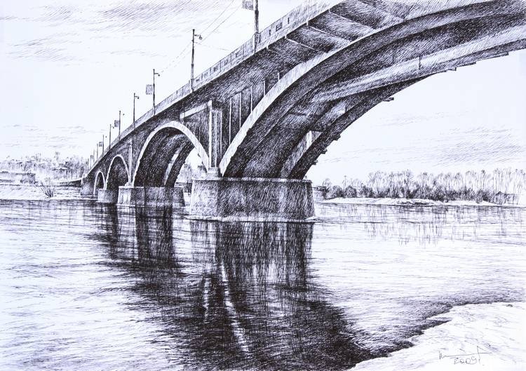 Карандашом виртуозно воплощается городской пейзаж Красноярска, расположенного на берегах мощной реки Енисей. В каждом штрихе этого произведения искусства чувствуется динамичность, суетливость и энергия современного мегаполиса. Строгие линии высоток и небоскребов соседствуют с красивыми набережными и парками, создавая уникальную атмосферу сочетания современности и природы. Чередование теней и света, которые точно передаются мастерскими движениями карандаша, подчеркивают живописность и красоту этого города. Каждый элемент рисунка отражает характер и уникальные черты Красноярска, привлекая внимание зрителя и вызывая у него интерес к этому прекрасному месту.