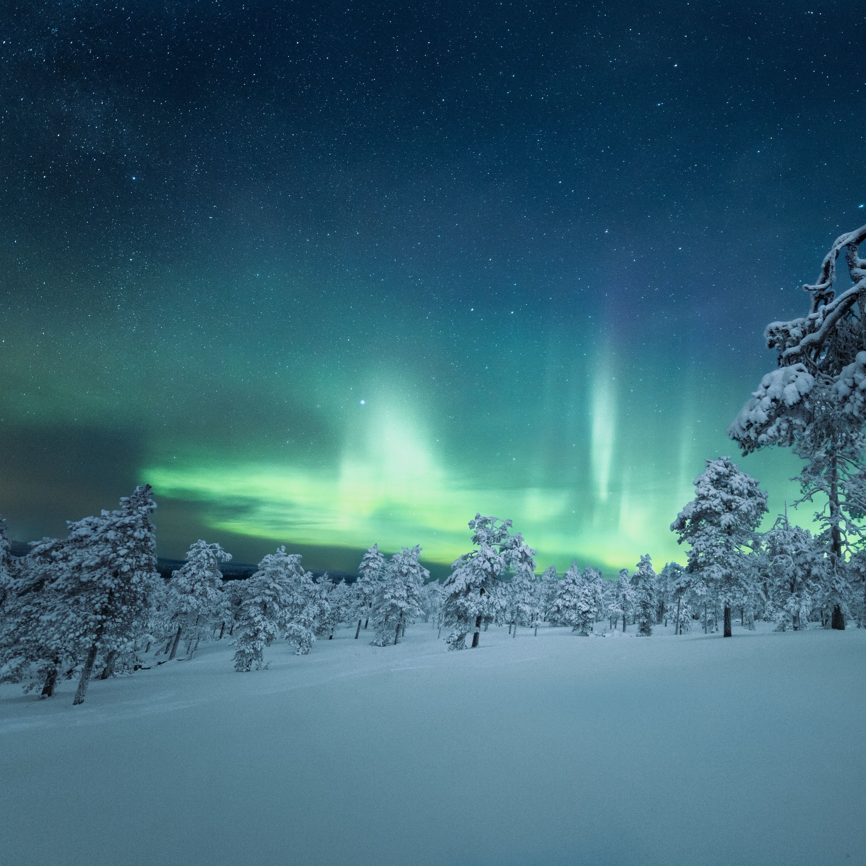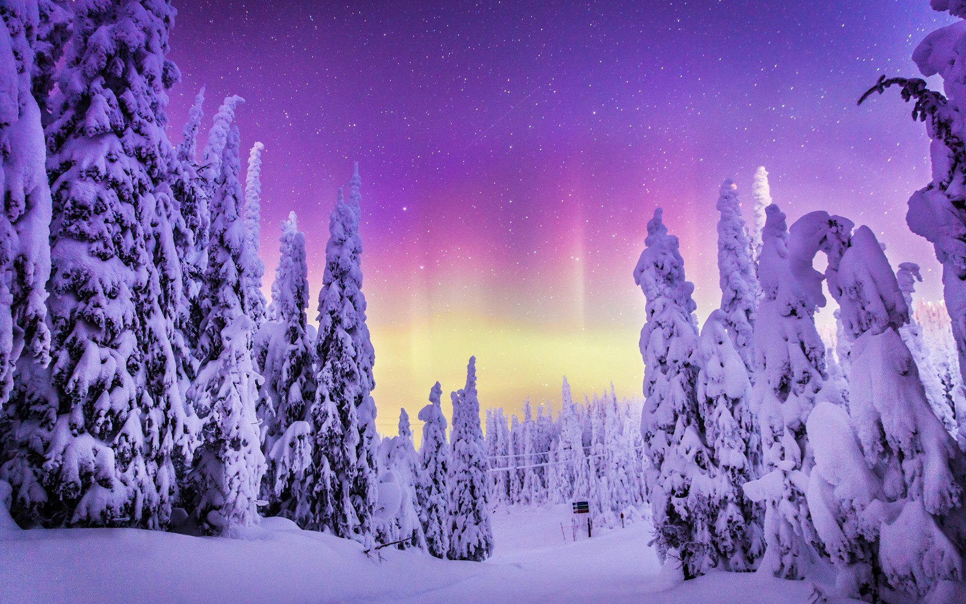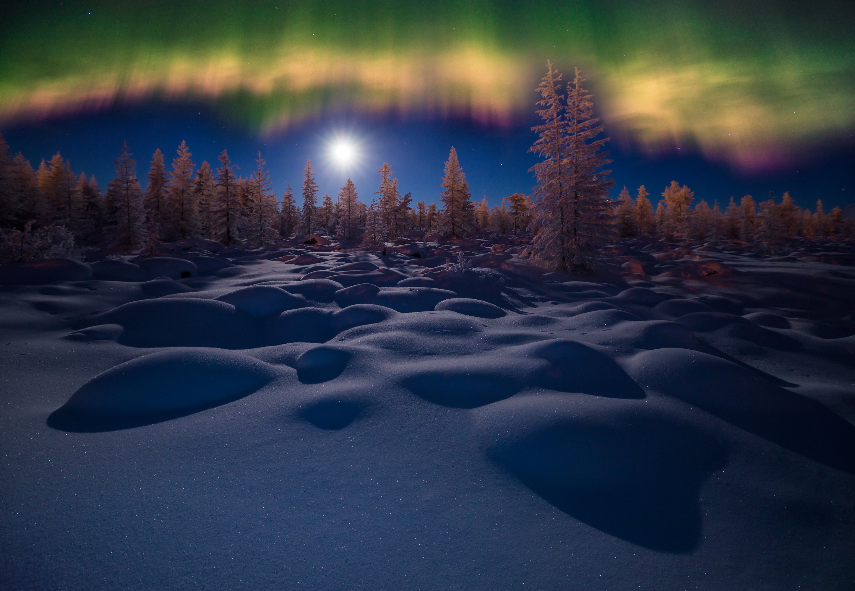 Северное сияние и снег