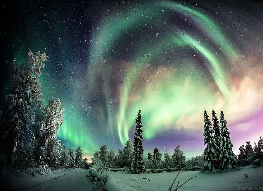 Петрозаводск Северное сияние зима