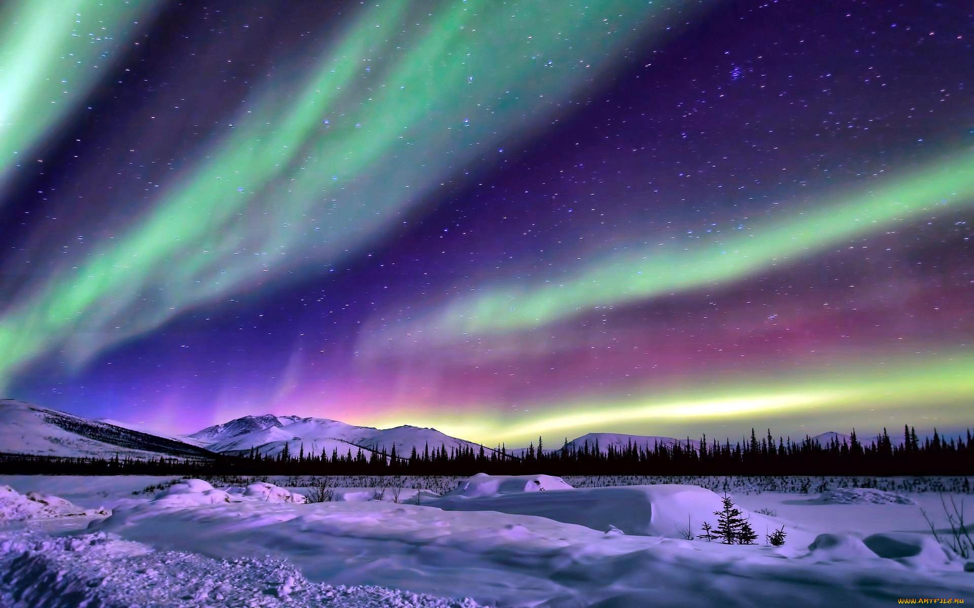 Аляска зимой Северное сияние
