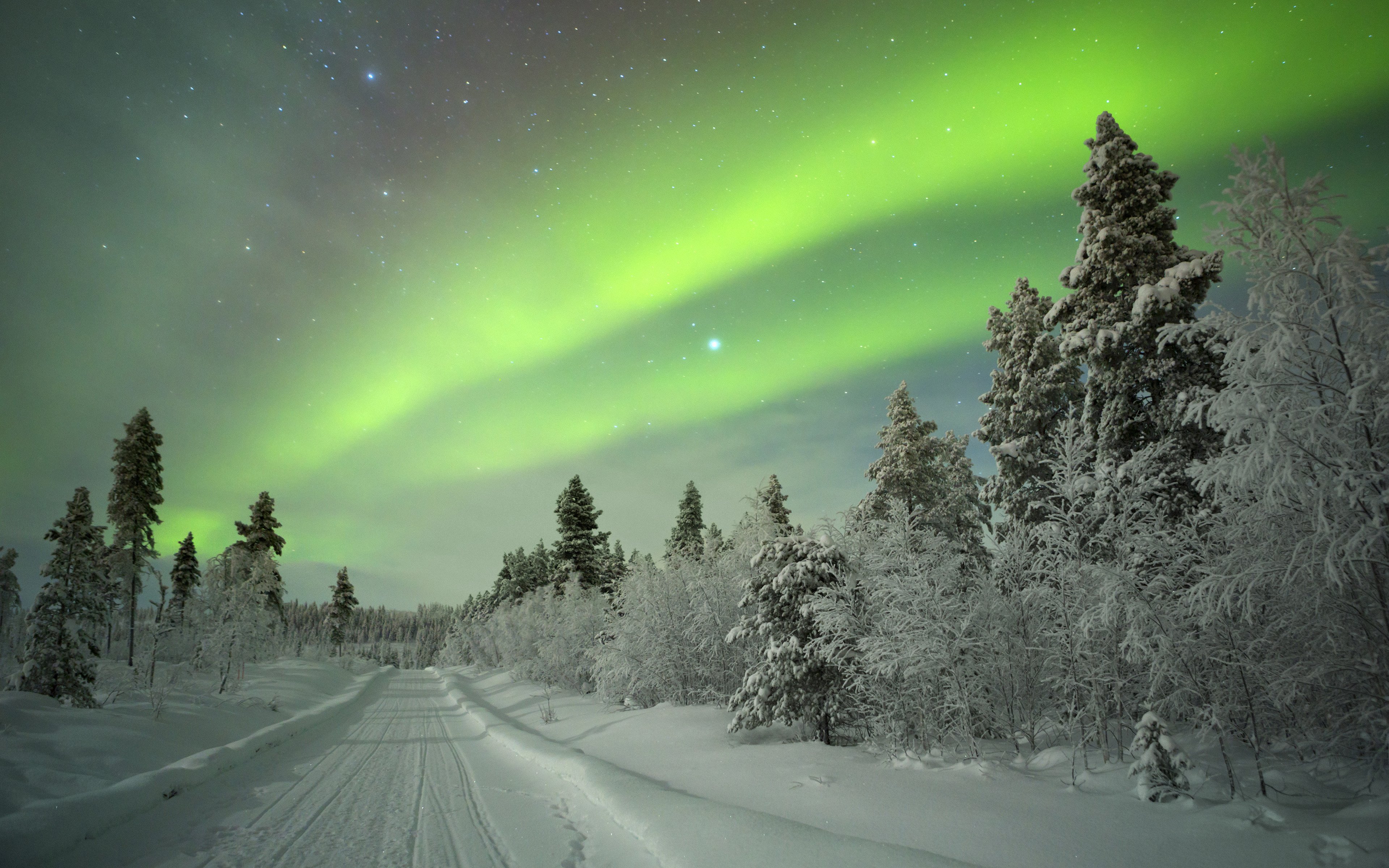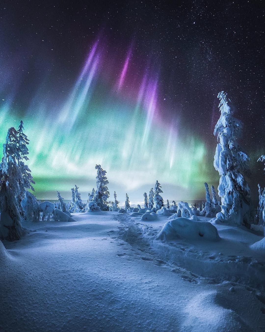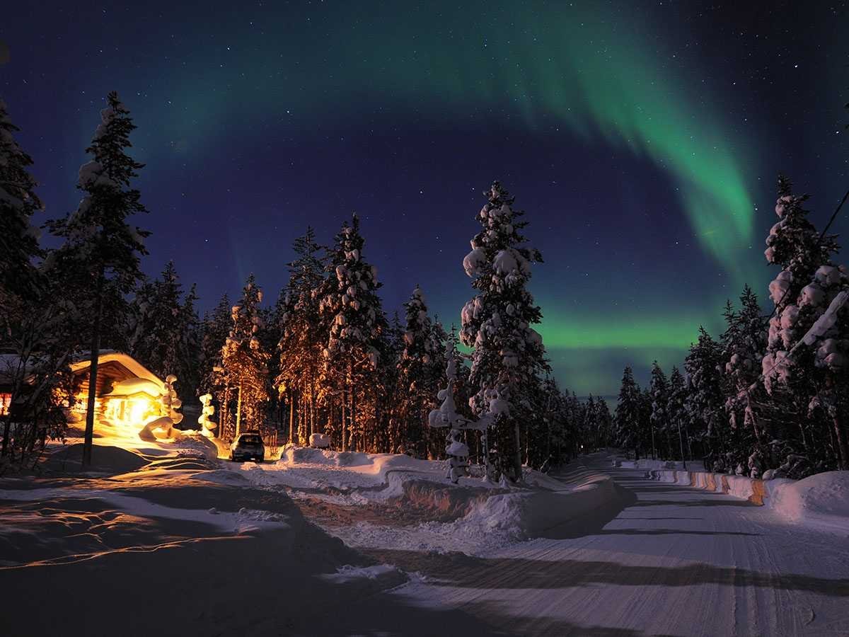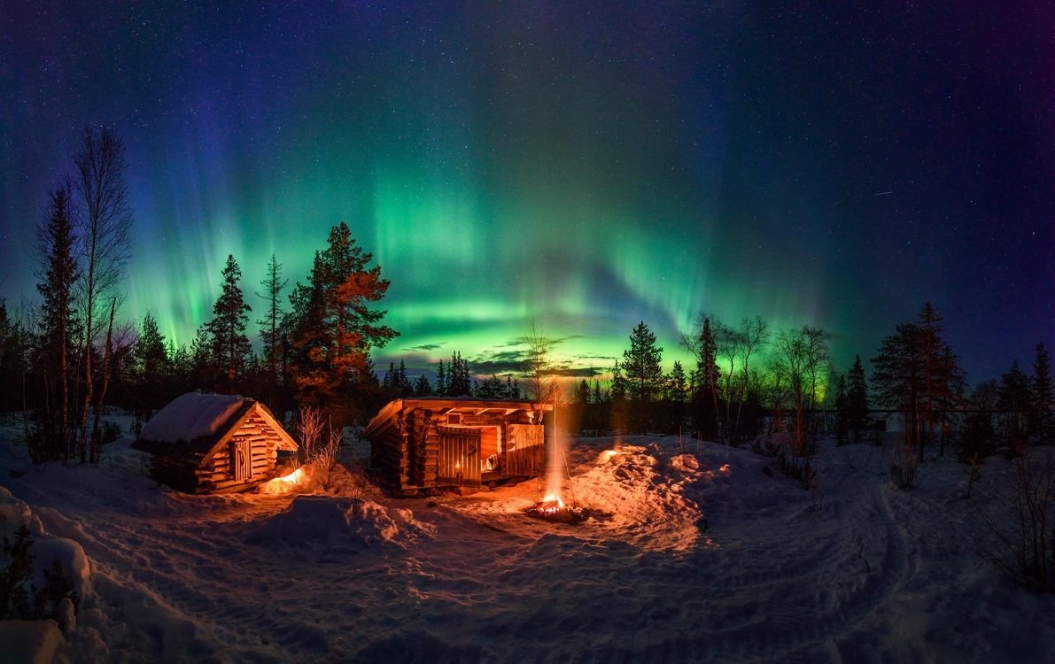 Природа Финляндии зимой Северное сияние
