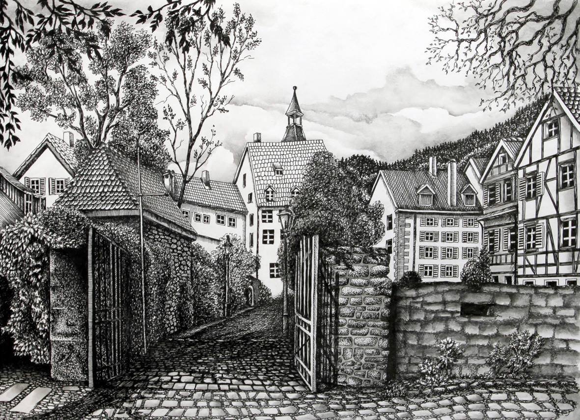 Городской пейзаж карандашом