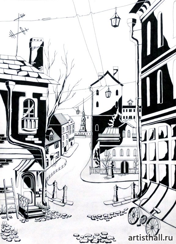 Городской пейзаж в графике