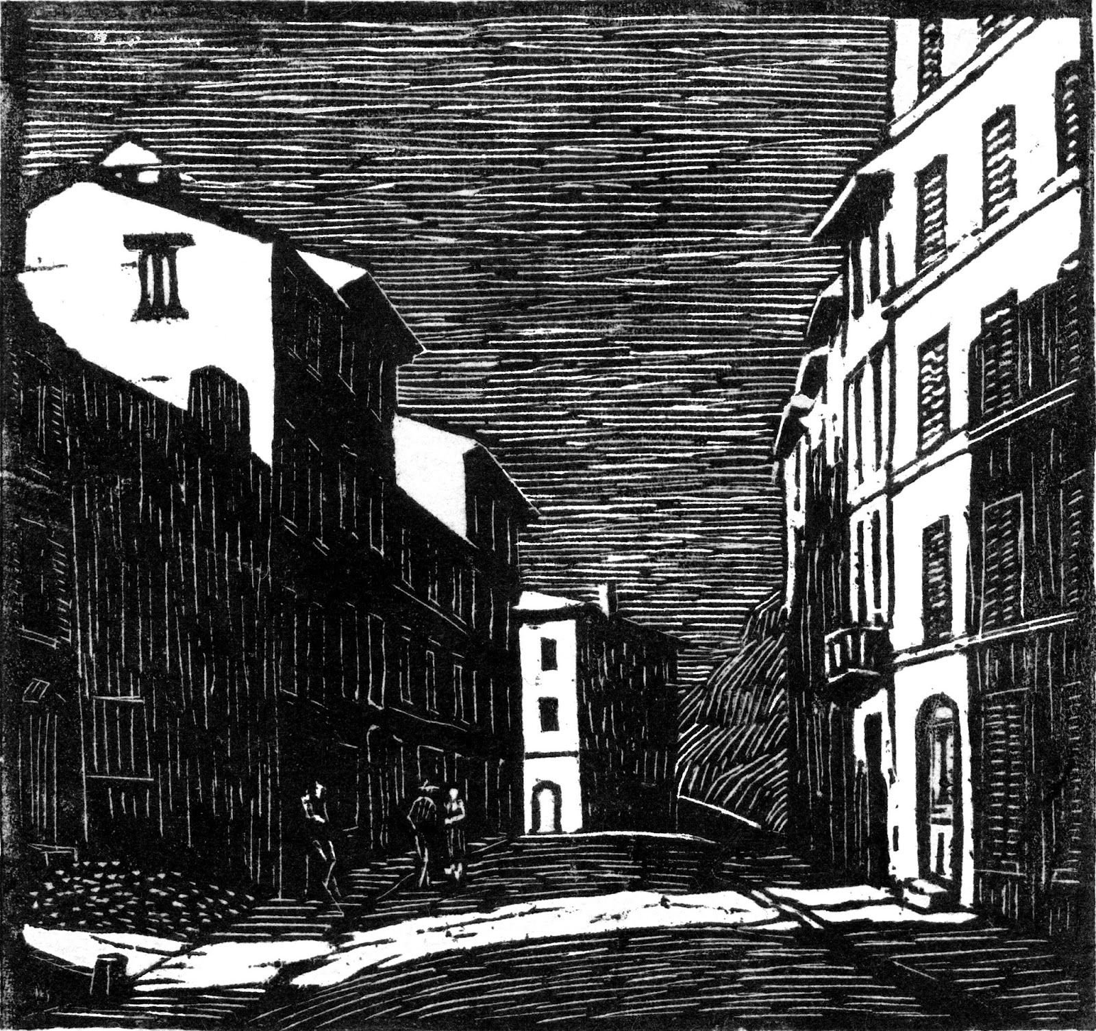 Линогравюра пейзаж города