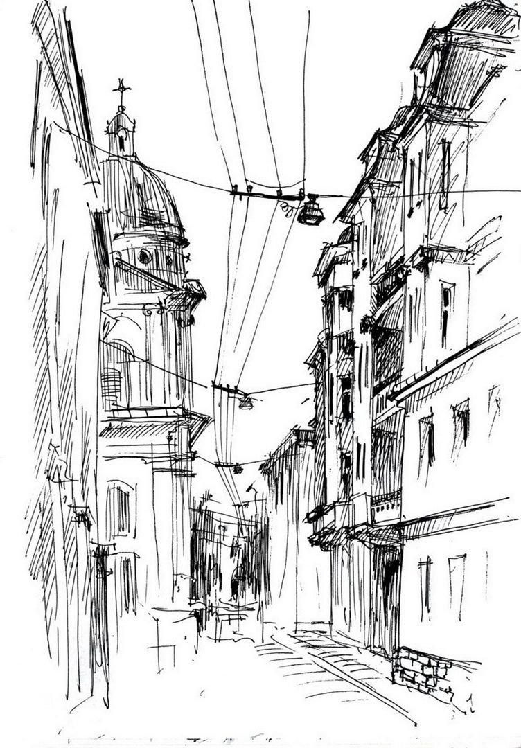 Зарисовка города линейная перспектива