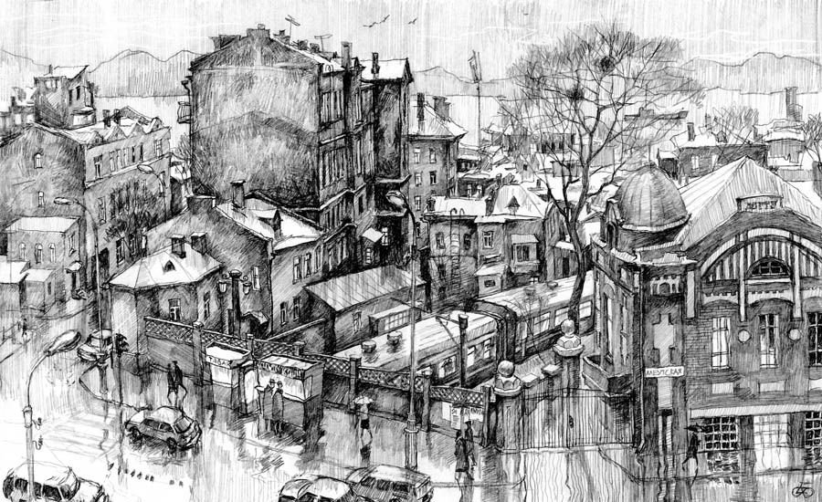 Наброски и зарисовки городского пейзажа