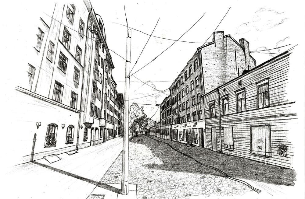 Зарисовка города линейная перспектива