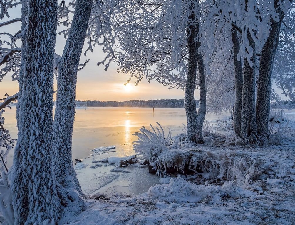 Зима река солнце