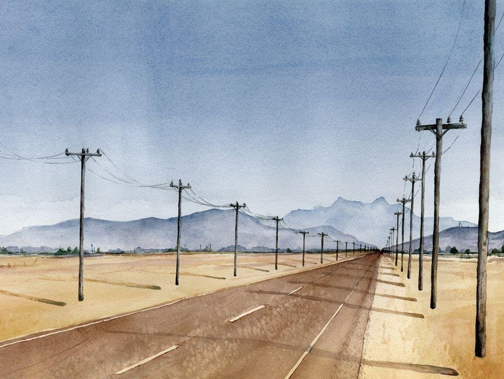 Картина с дорогой уходящей вдаль