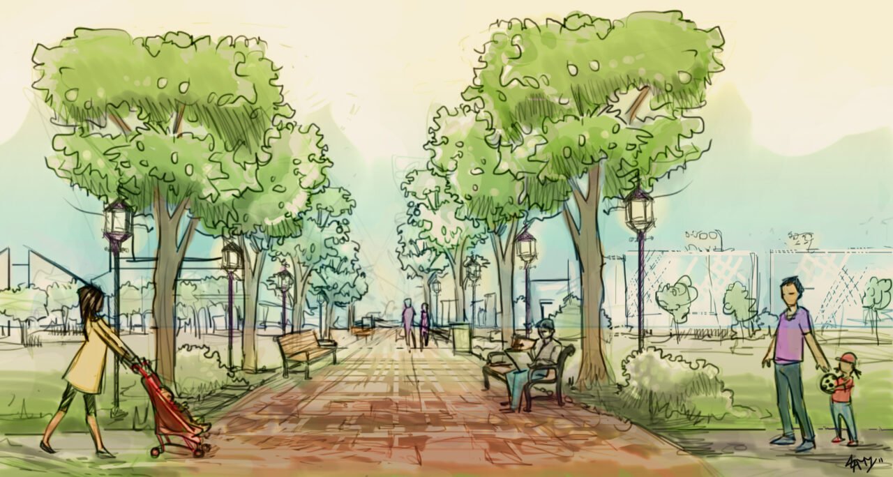 Фронтальная перспектива городской парк