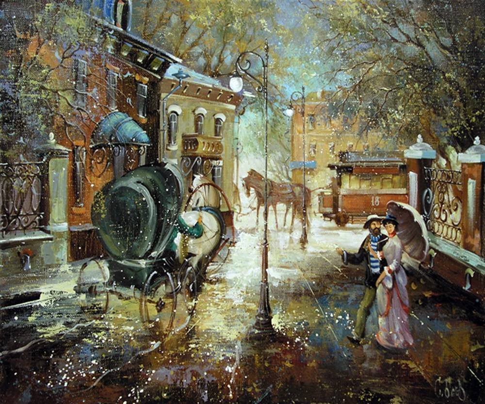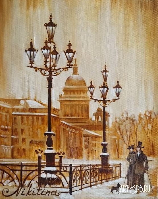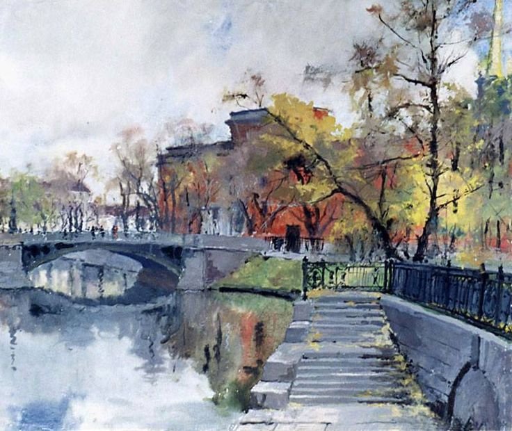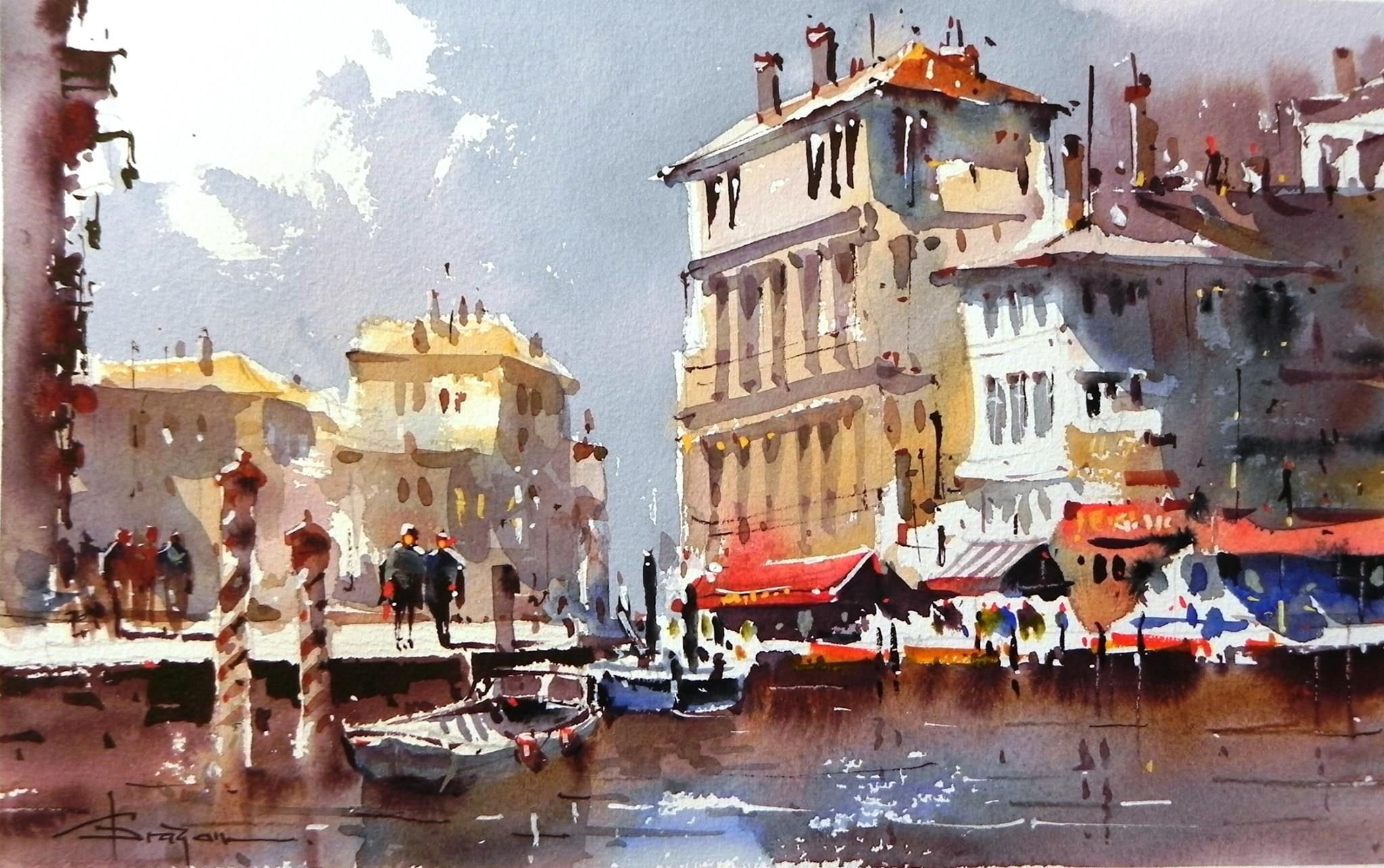 Акварель городской пейзаж Санкт Петербург Алексеев